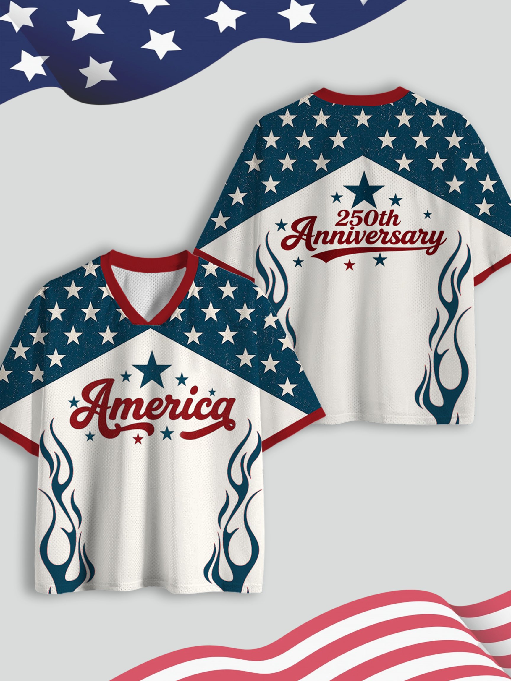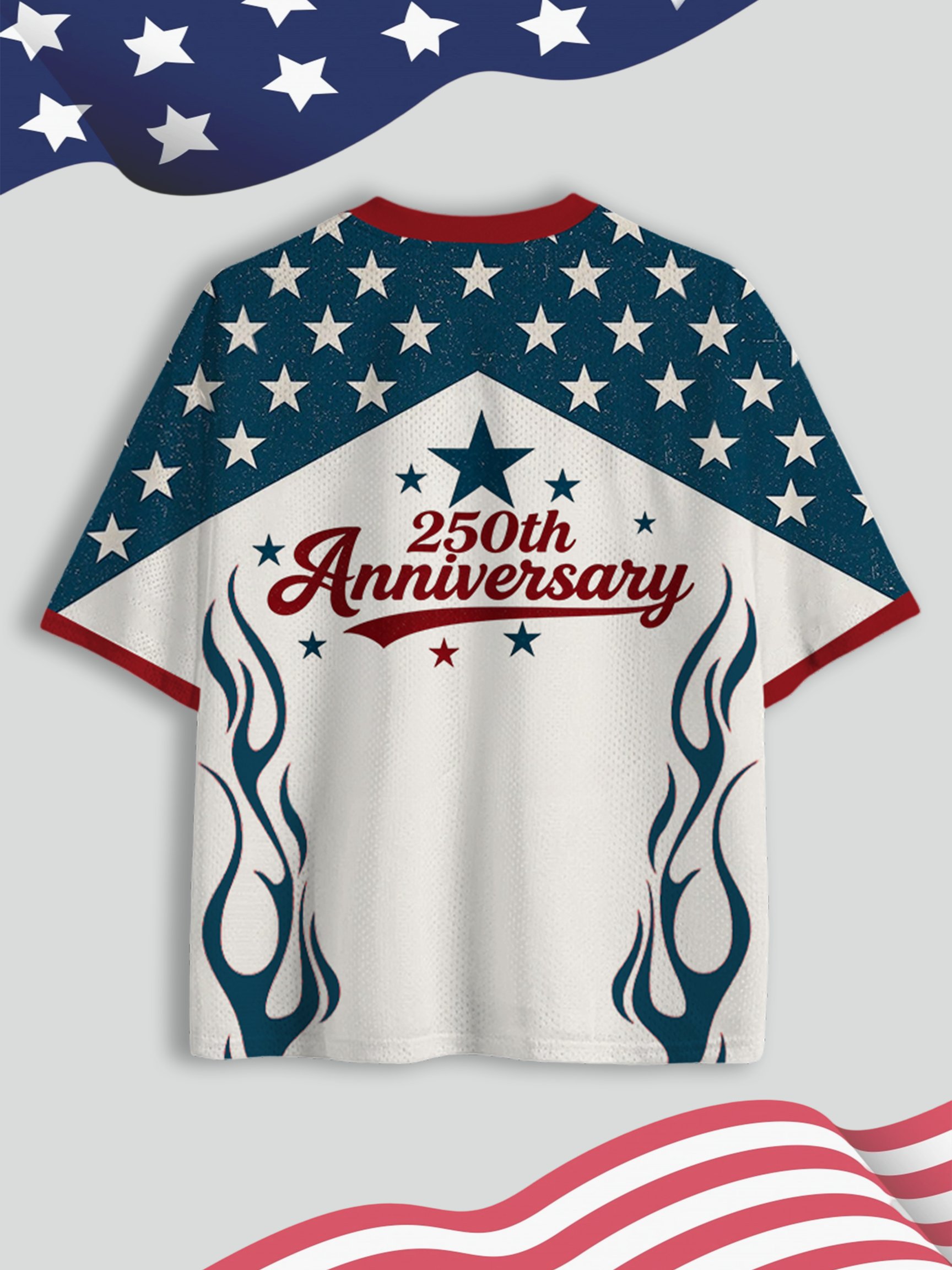American Independence Day 1776-2026 250 Years Anniversary Print Mesh Jersey Shirt