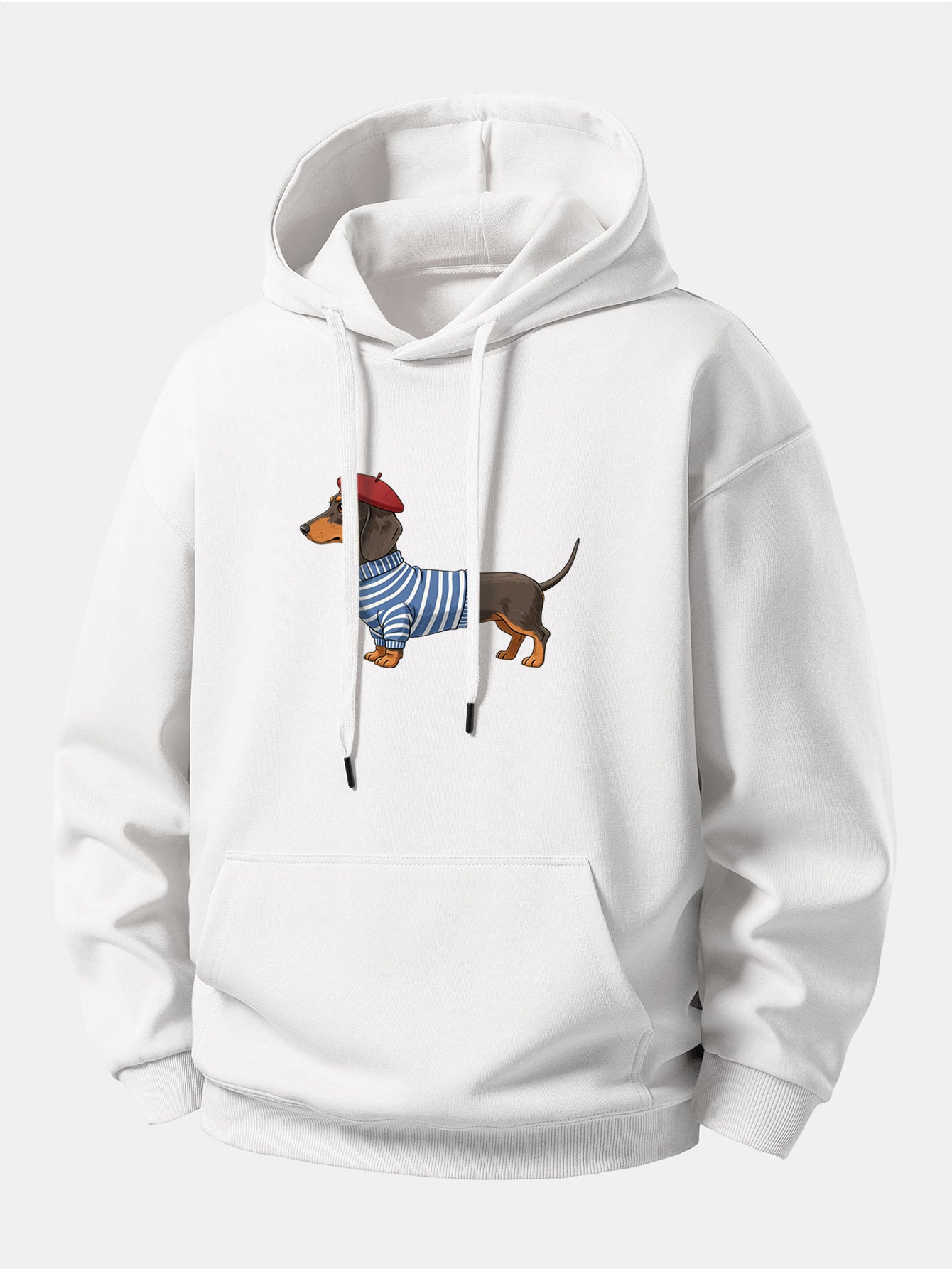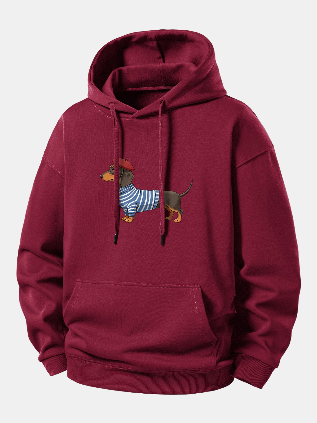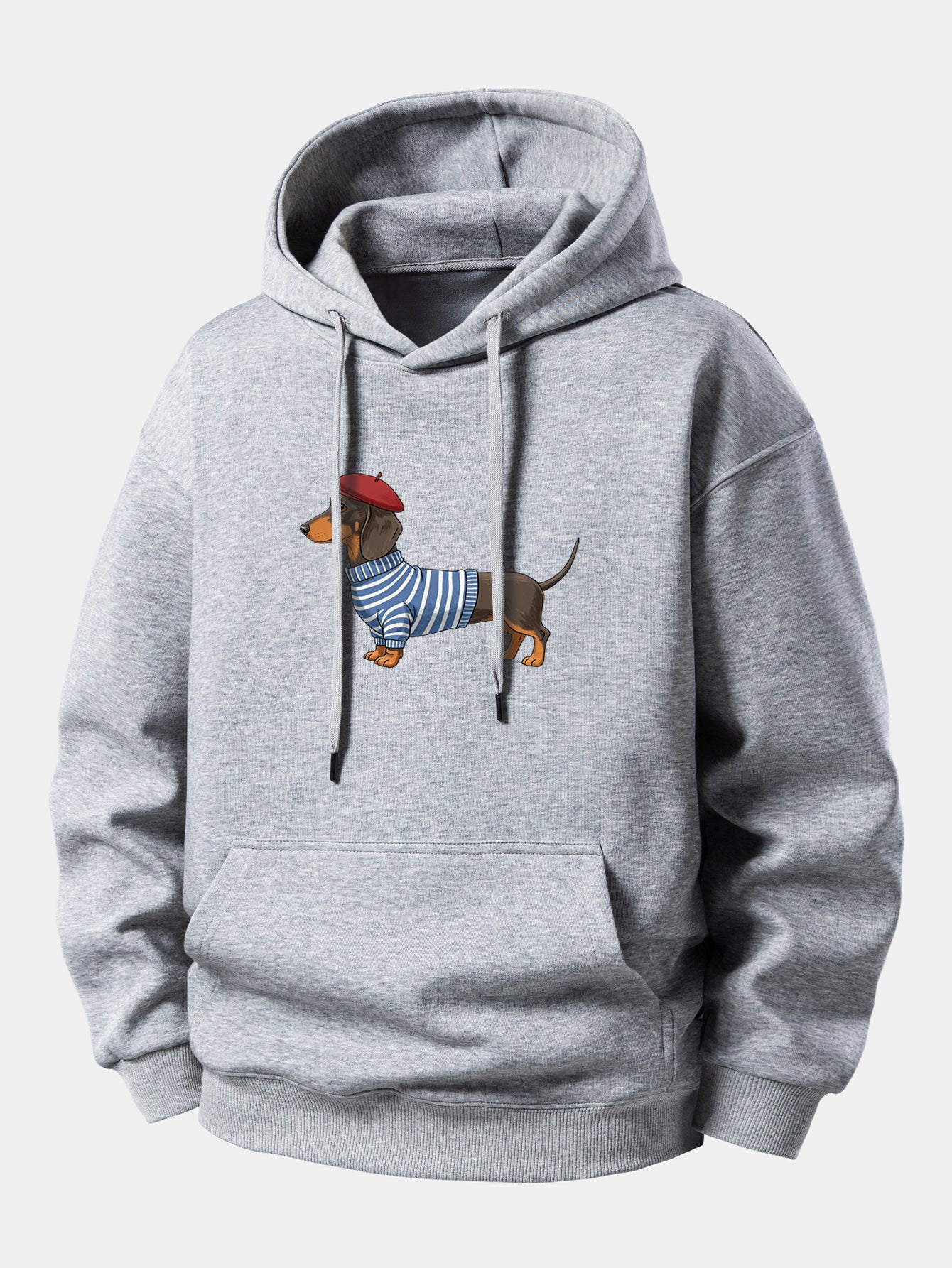 Made from soft, comfortable fabric, this hoodie features a relaxed fit perfect for all-day wear. The adorable dachshund wearing a striped sweater print adds a fun, charming touch, making it ideal for casual outings, lounging, or streetwear-inspired looks.