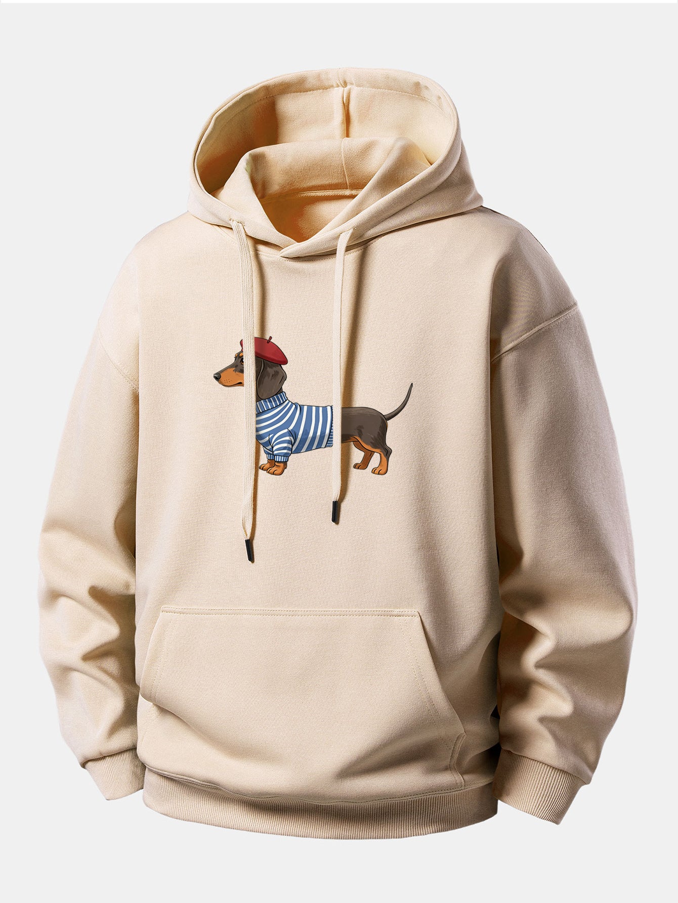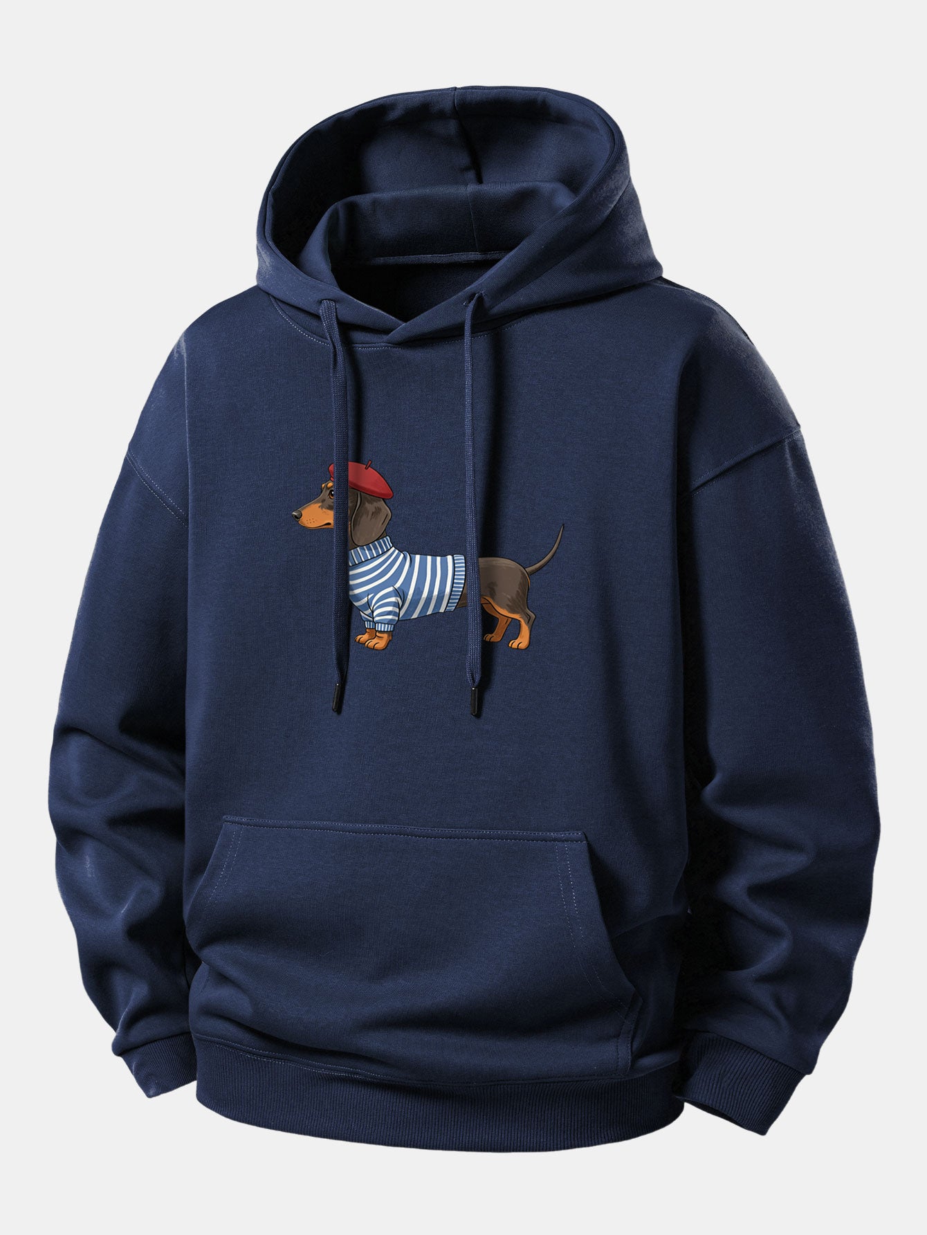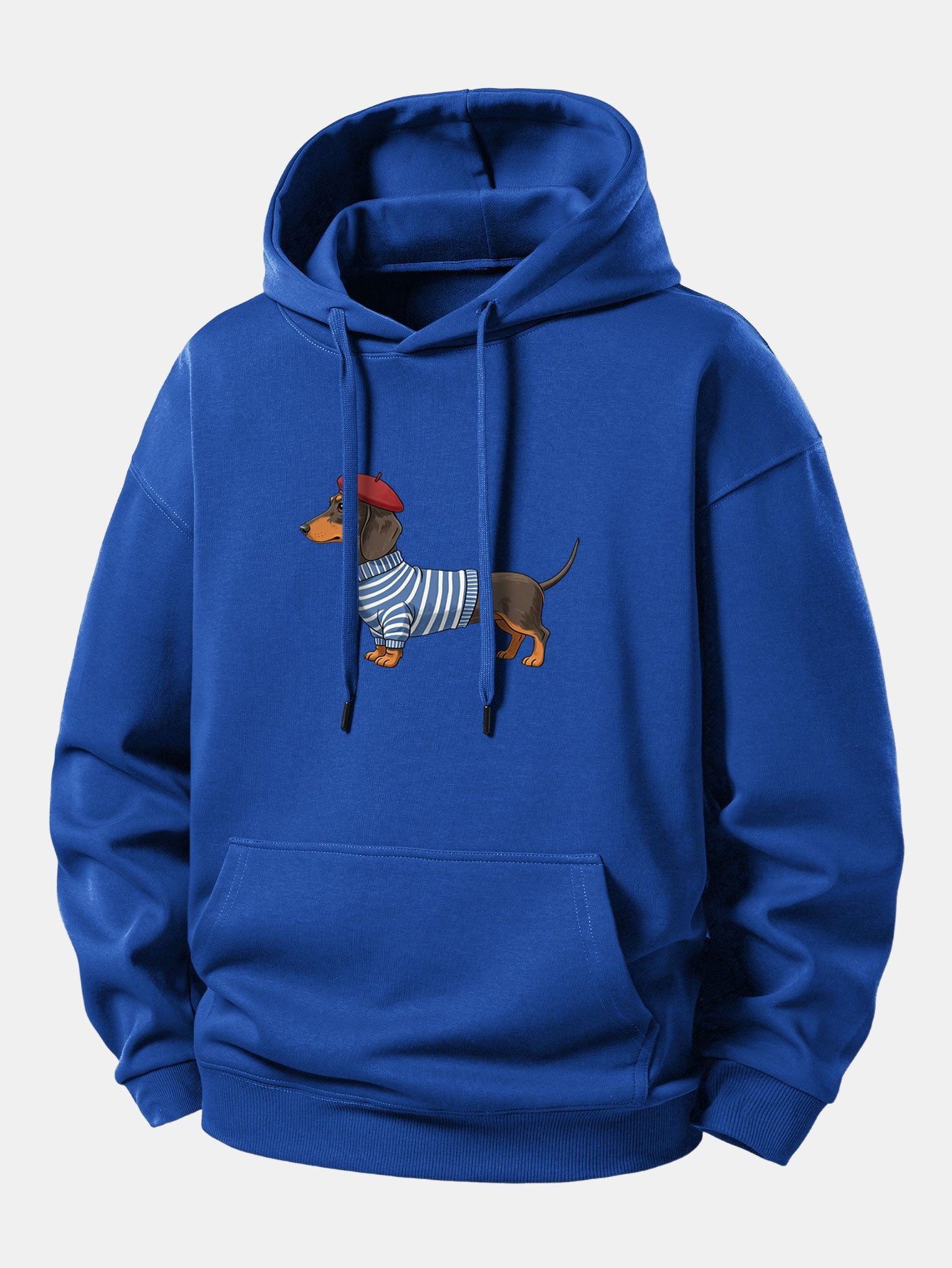Made from soft, comfortable fabric, this hoodie features a relaxed fit perfect for all-day wear. The adorable dachshund wearing a striped sweater print adds a fun, charming touch, making it ideal for casual outings, lounging, or streetwear-inspired looks.