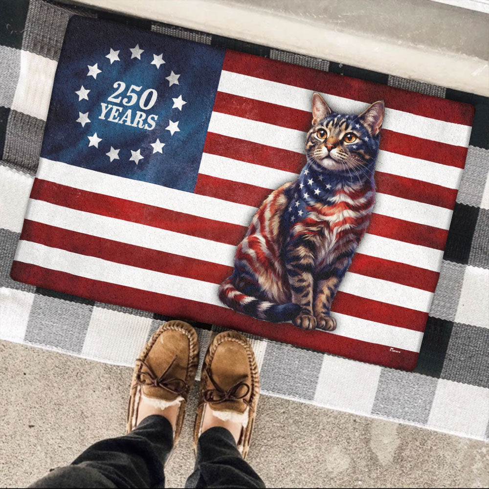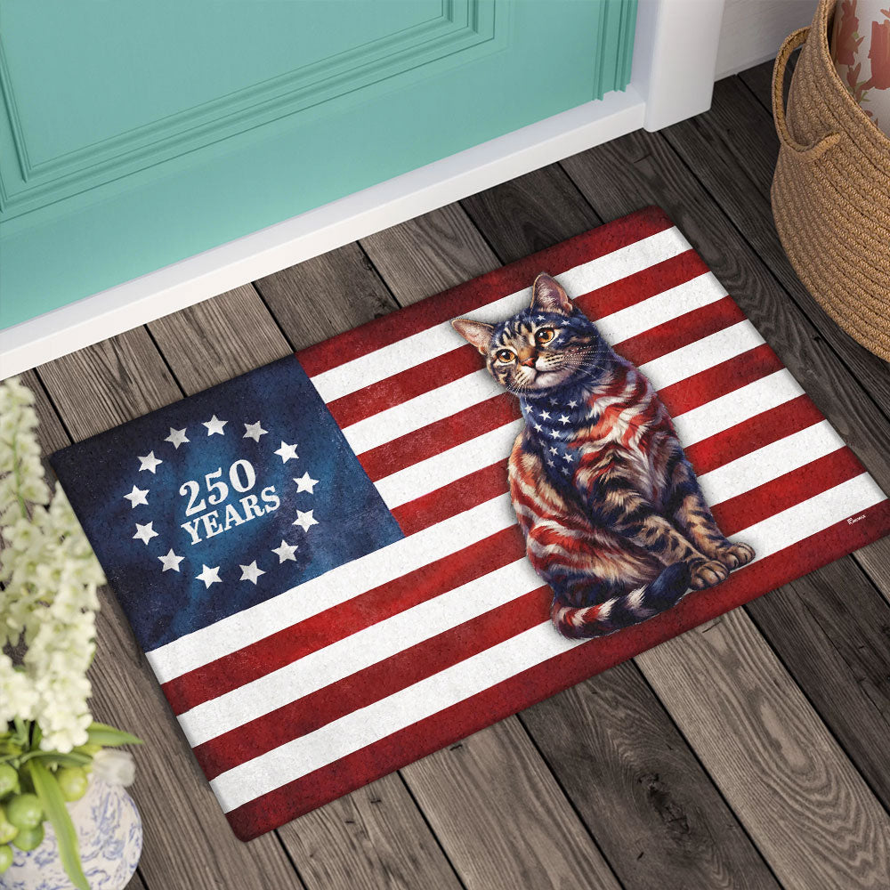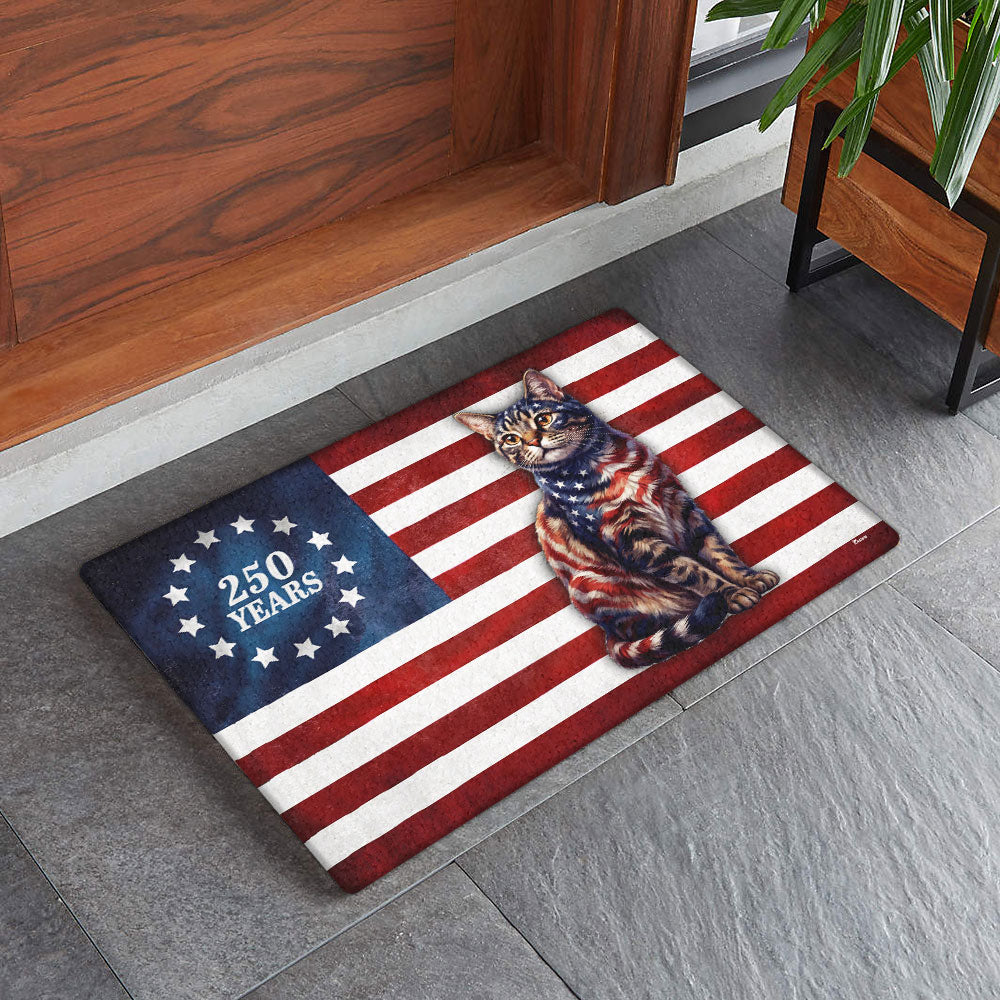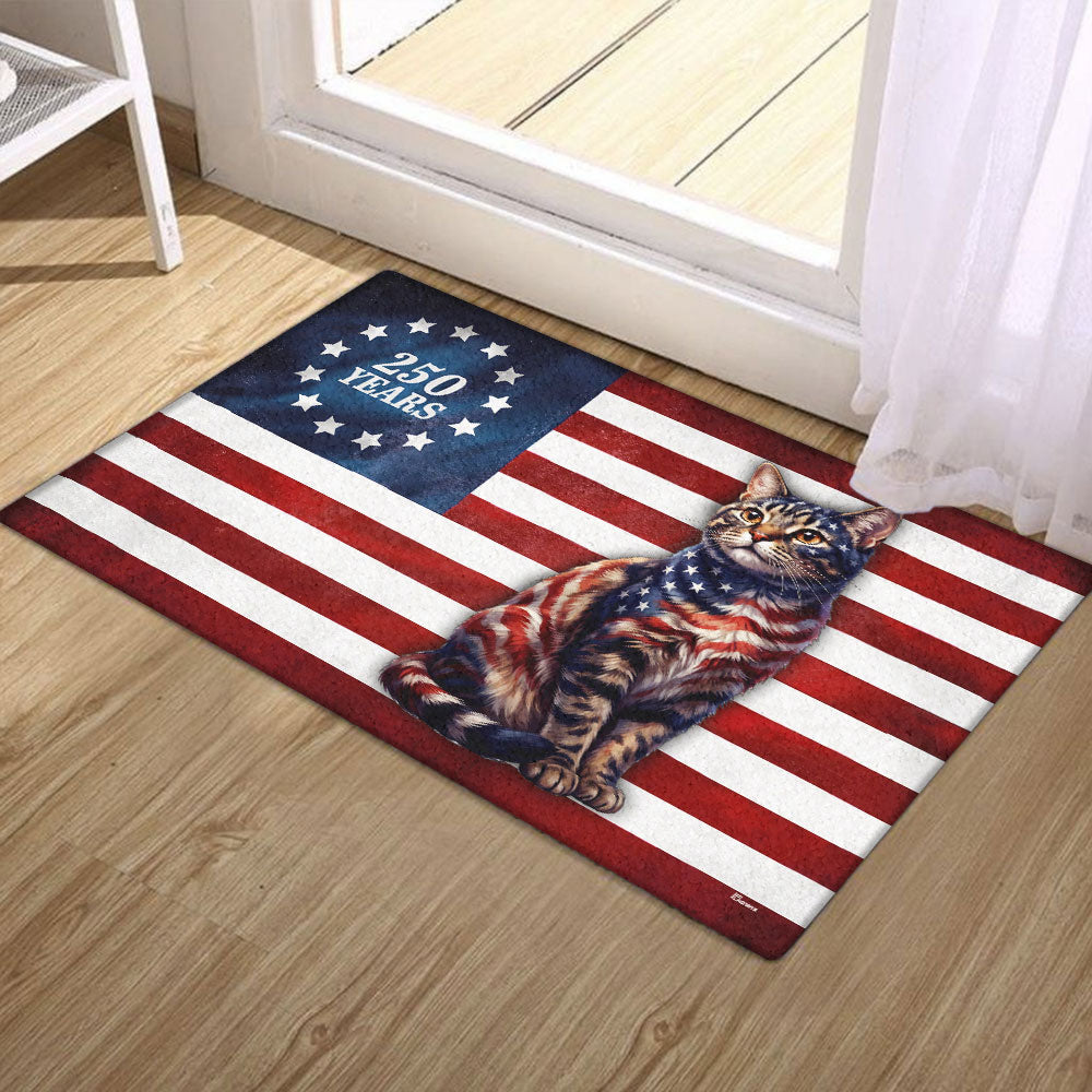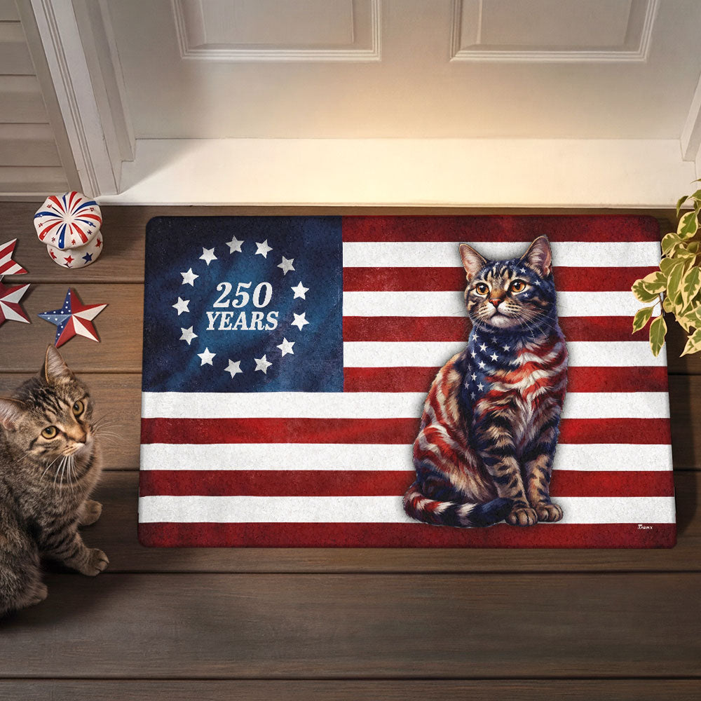 Flagwix Patriotic Cat Doormat, 250 Years Betsy Ross Flag Doormat for Cat Lover