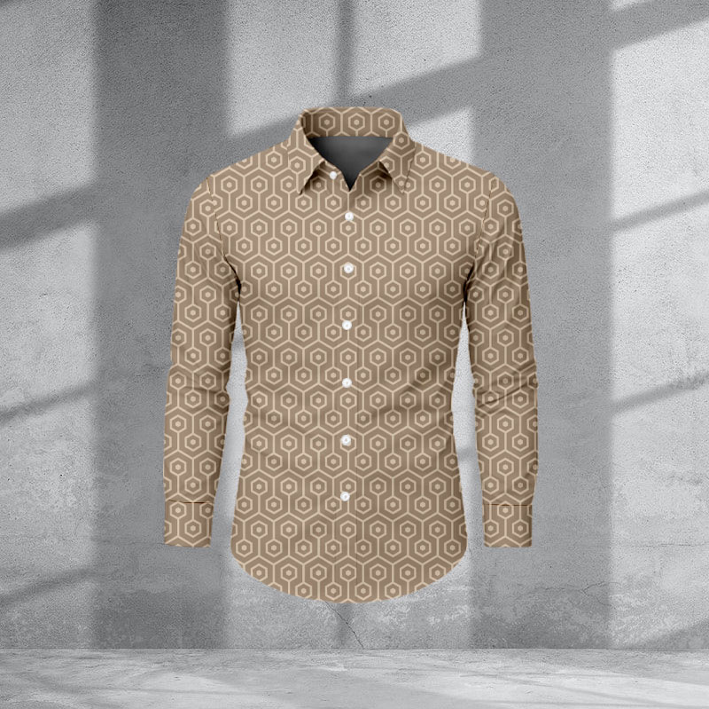 Men's Casual And Business Color Matching Vintage Pattenr Long Sleeve Lapel Shirts
