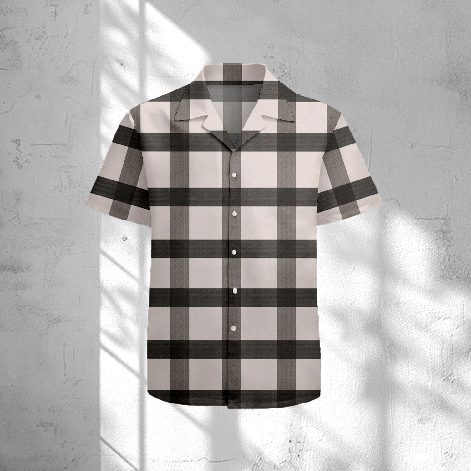Men's Casual Coffee & Khaki Color Matching Checkered Print Short-Sleeve Shirt