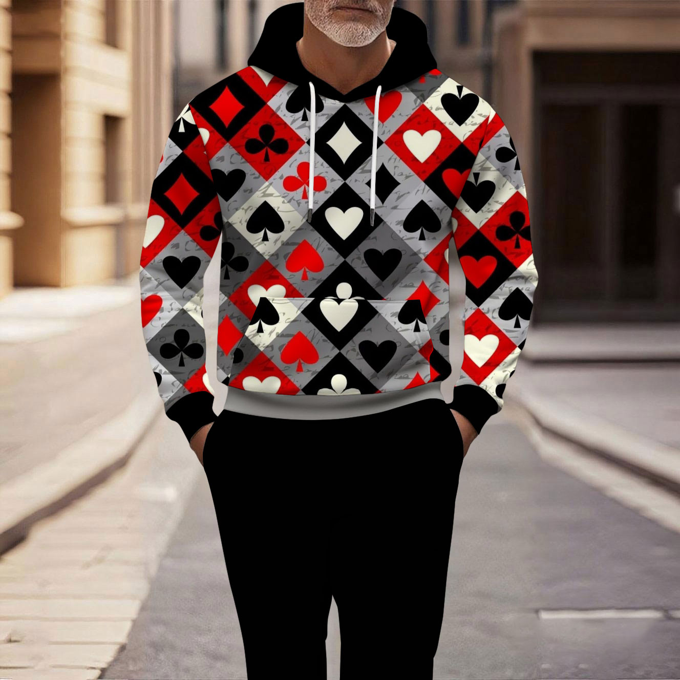 Men's Casual Color Matching Printed Long-Sleeved Hoodies Sweatshirt & Trousers Two-Piece Set