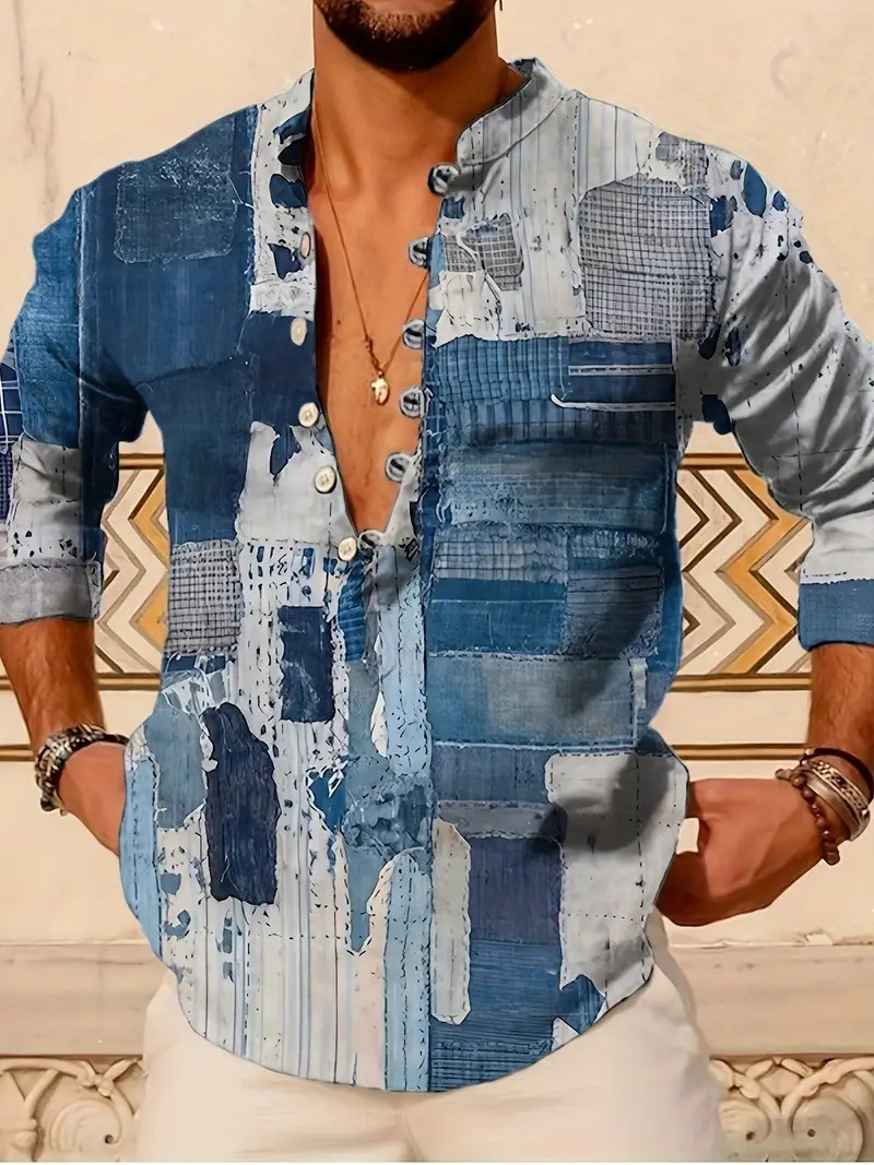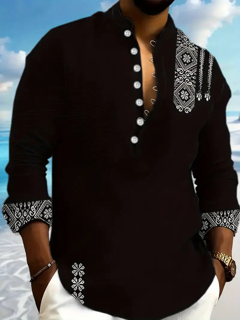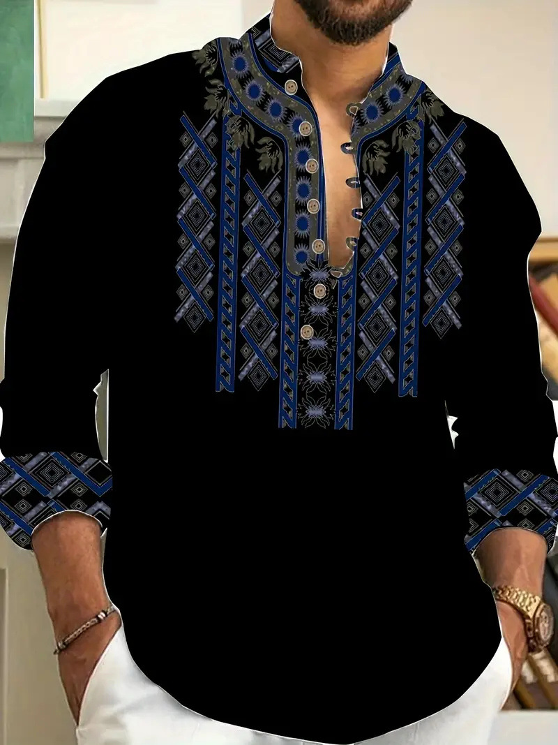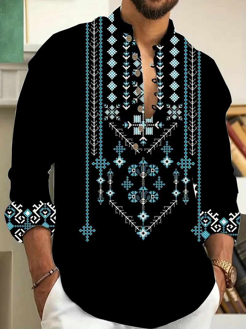 Men's Casual Ethnic Style Stand Collar Long Sleeved Shirt