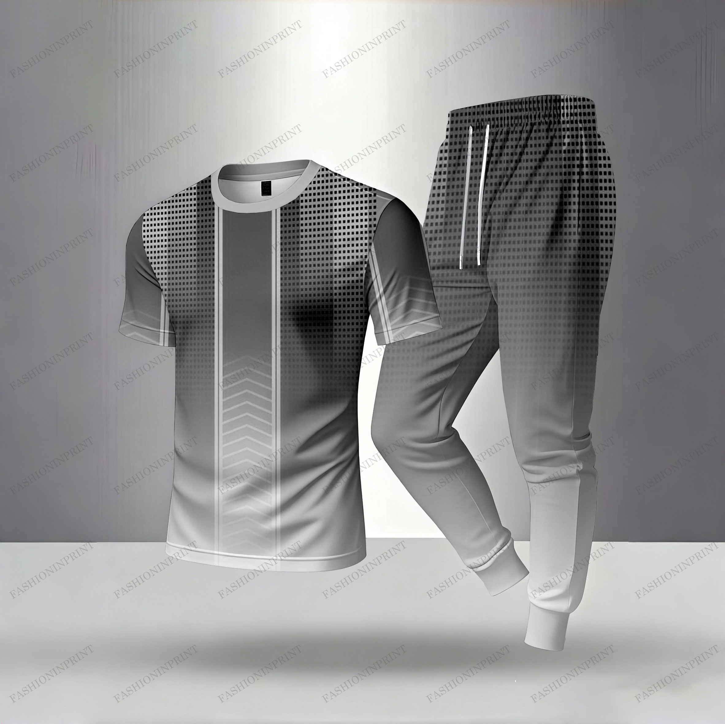 Men's Casual Gray Color Matching Gradient Polka-dots Printed Short Sleeved Polo Shirt & Trousers Two-Piece Set