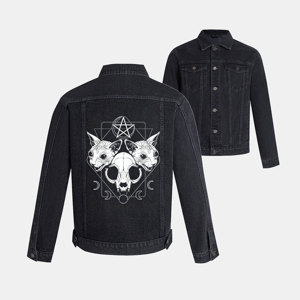 Men's Casual Cat Printed Long-Sleeved Denim Jacket