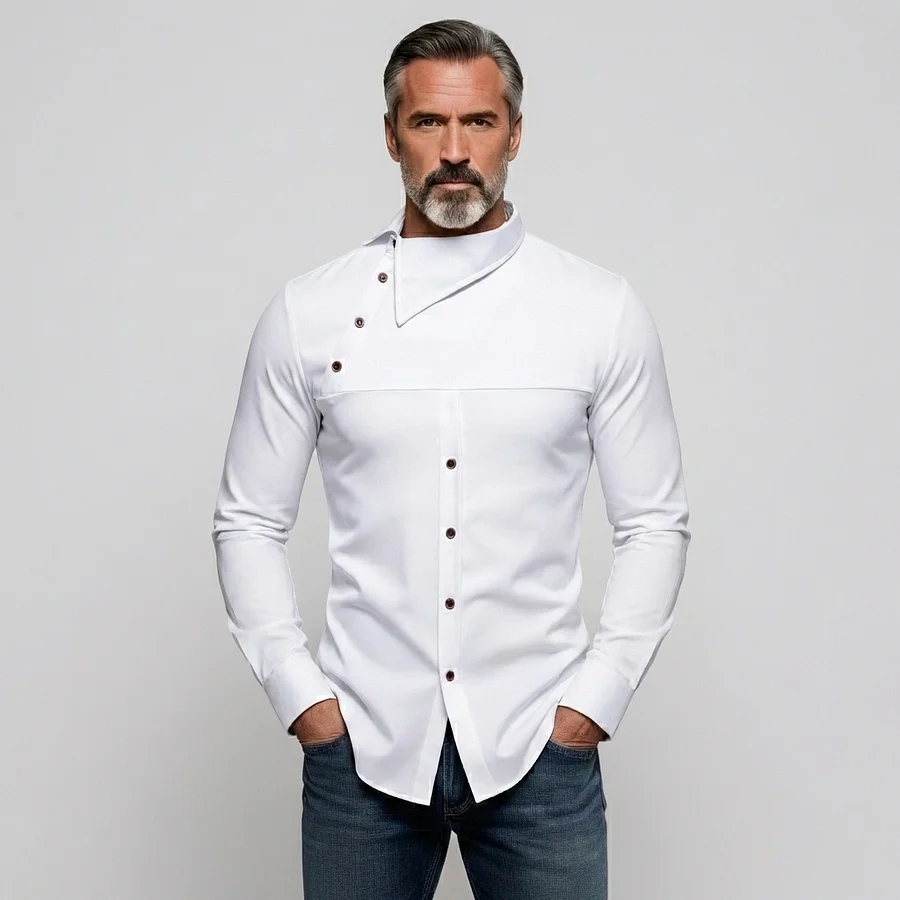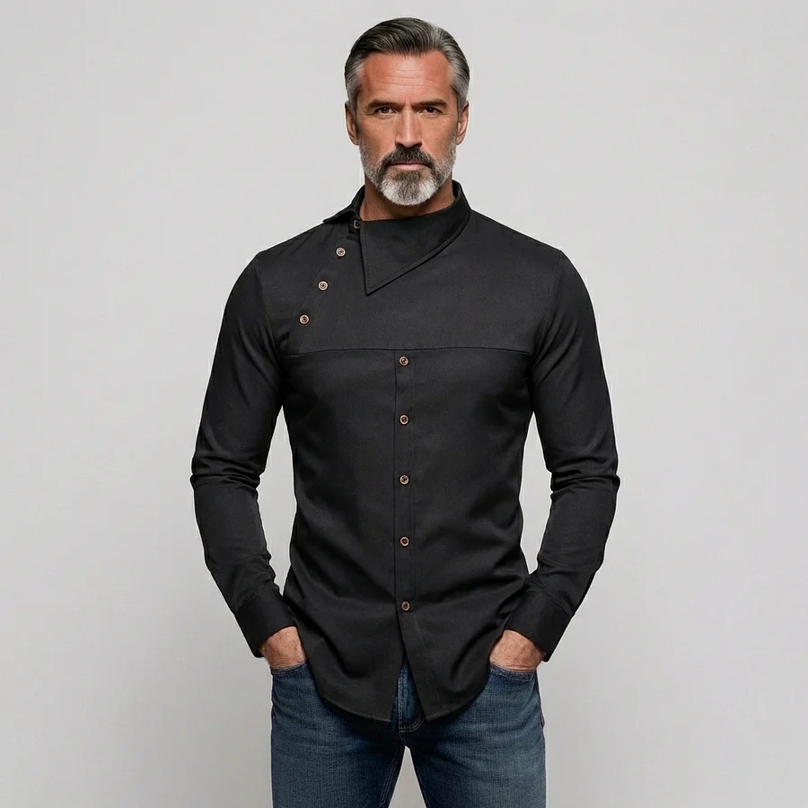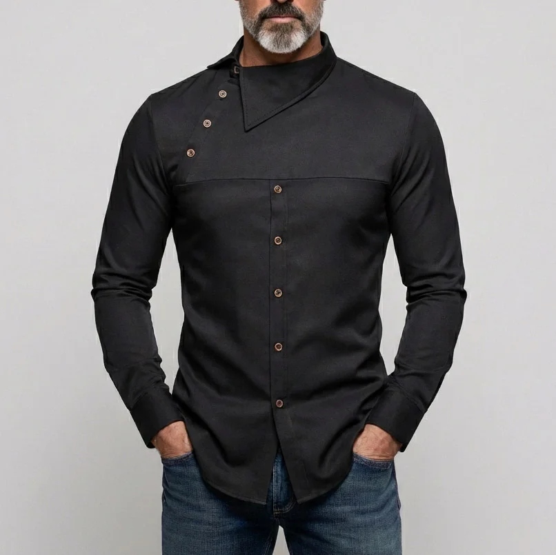 Men's Casual Solid Shirt Collar Asymmetrical Buttons Long Sleeve Shirts