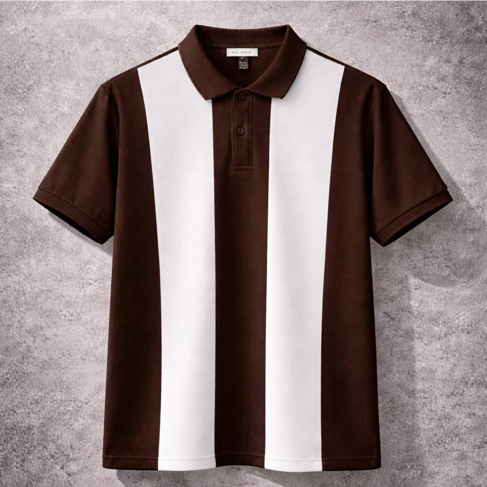 Men's Casual Coffee & White Color Matching Striped Polo Shirt