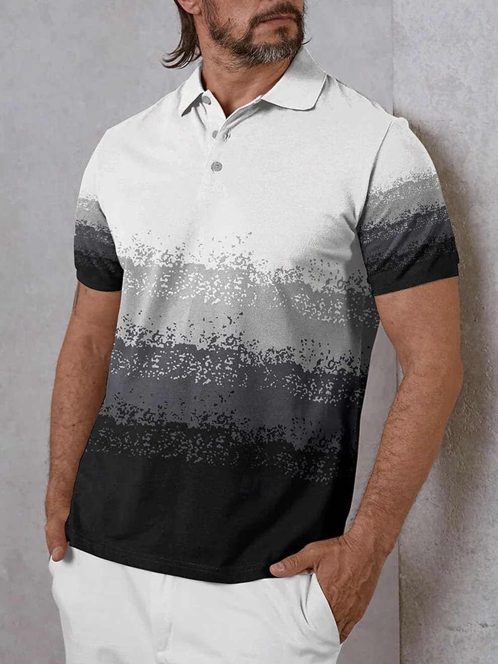 Men's Classic Color Block Casual Gradient Fashion Polo Shirt