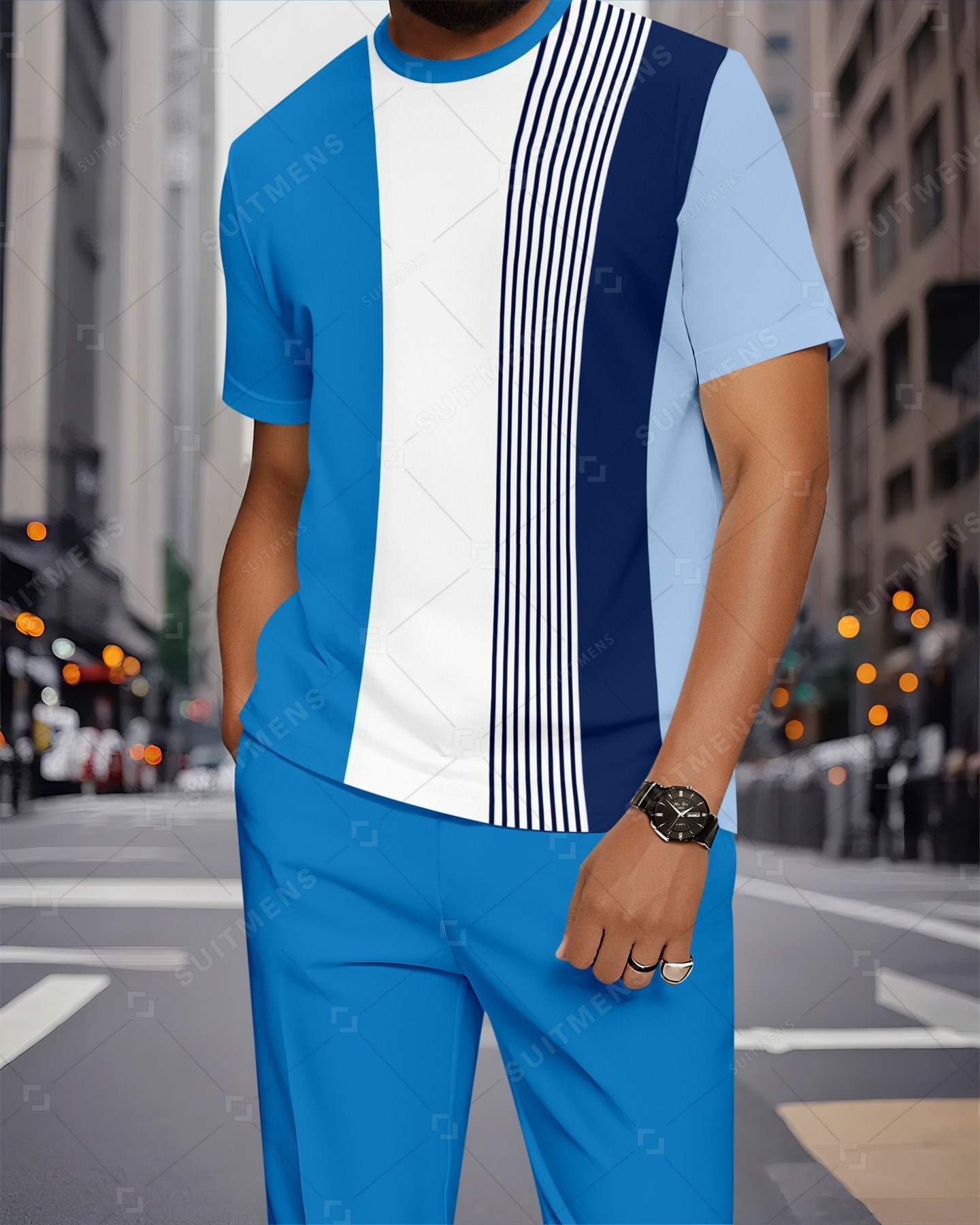 Men's Classic Printed Short Sleeve Leisure Suit - 1653