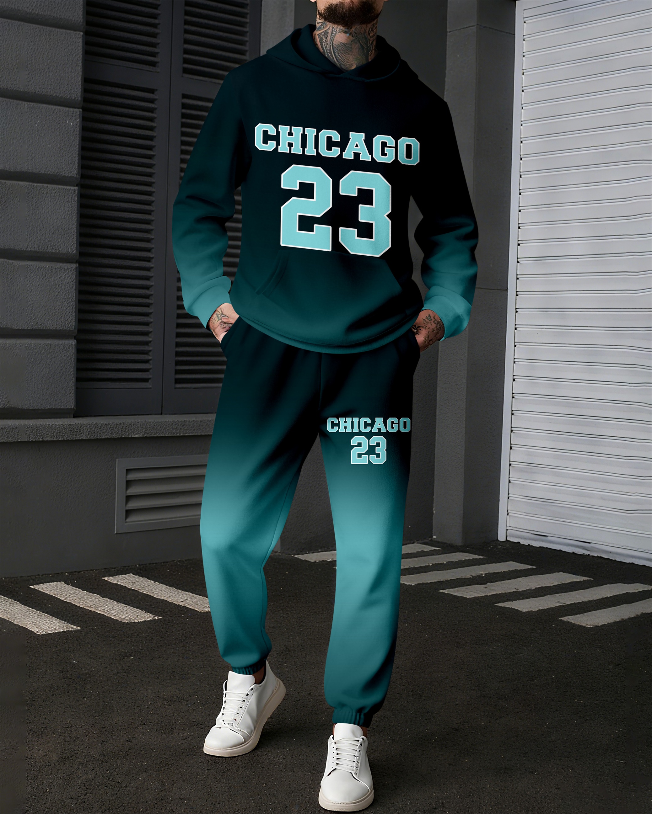 Men's Colorblock Gradient Sports Casual Hoodie Suit 1025