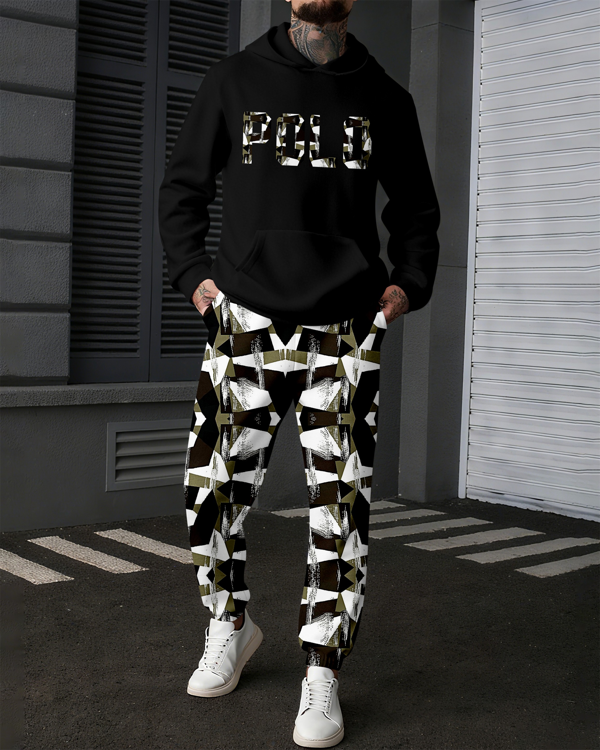 Men's Colorblock Sports Casual Hoodie Suit 1019