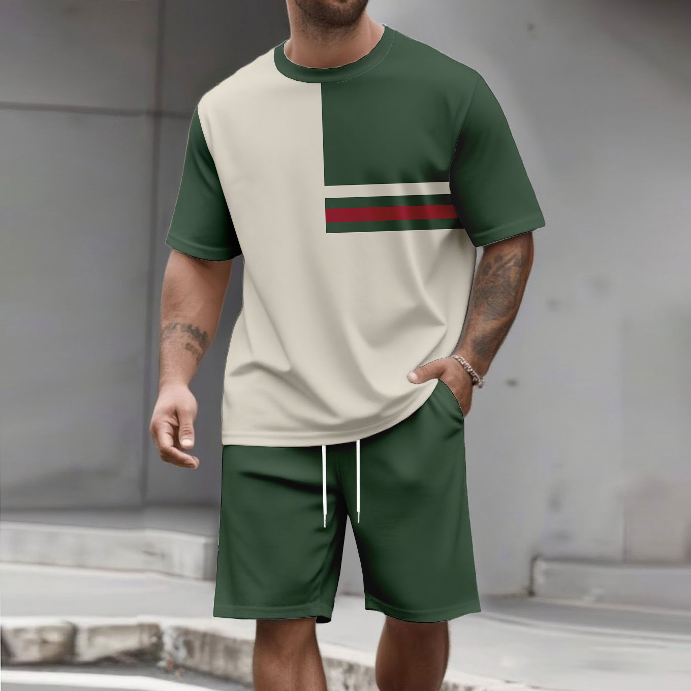 Men's Fashion Casual Color Matching Printed Short-Sleeved Two-Piece Set