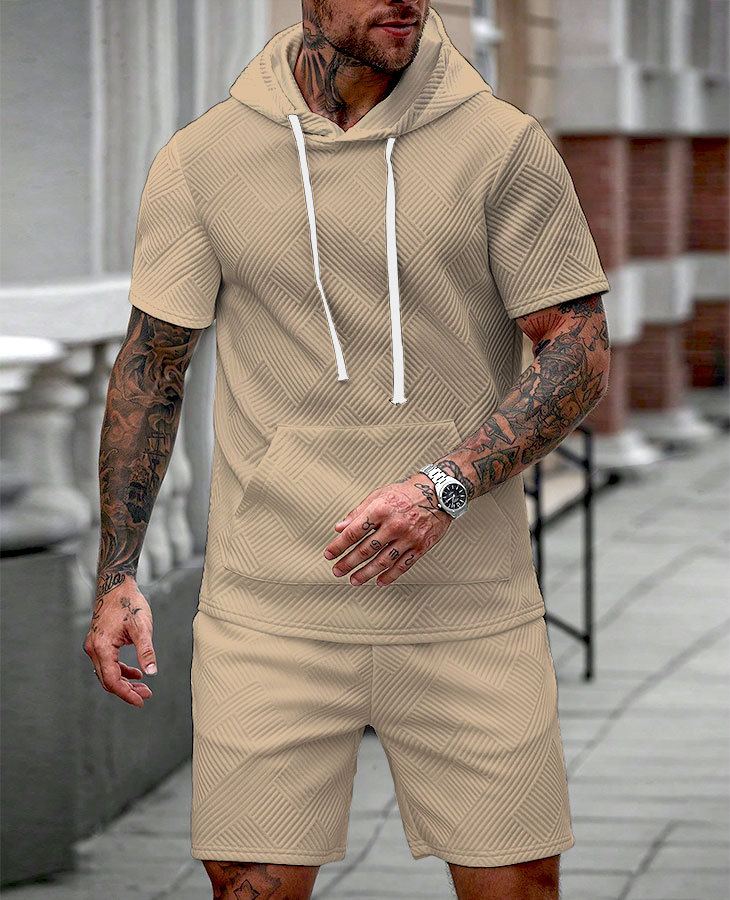 Men's Fashion Casual Hoodie Solid Color Short-Sleeved Two-Piece Set