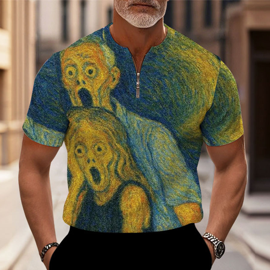 Men's Fashion Casual Round-Neck Geometric Printed Short-Sleeved Two-Piece Set