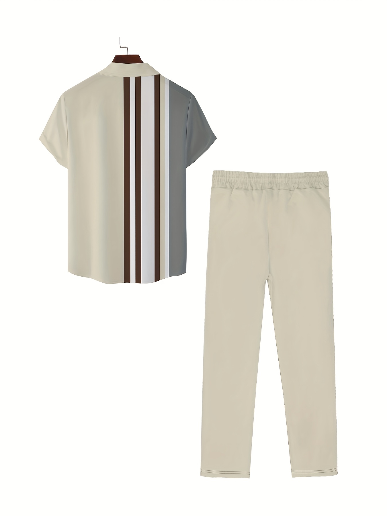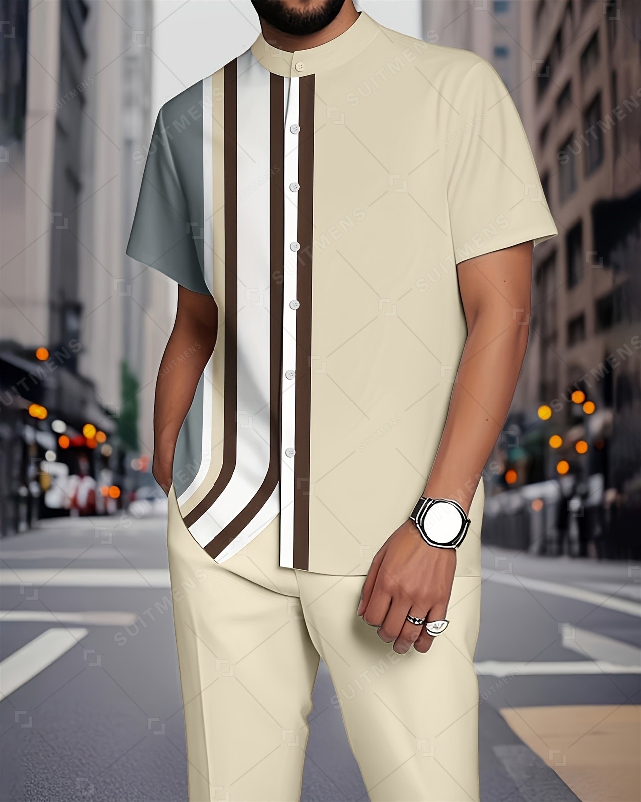Men's Formal Color Matching Printed Short-Sleeved Casual Set 014