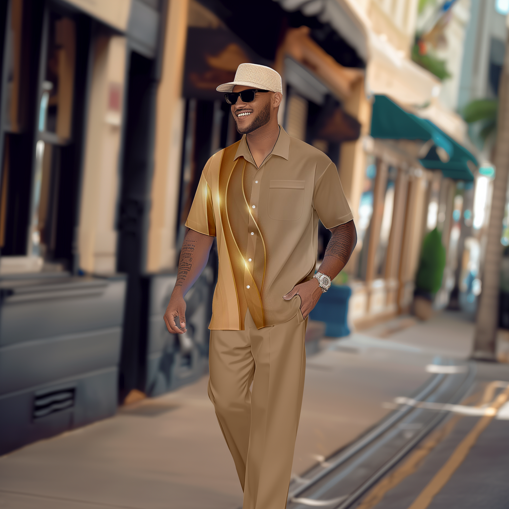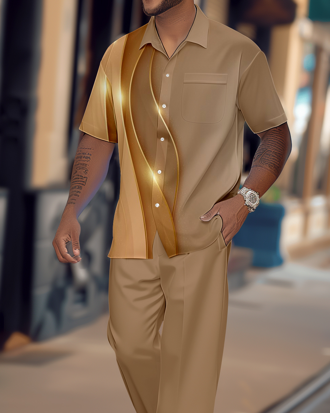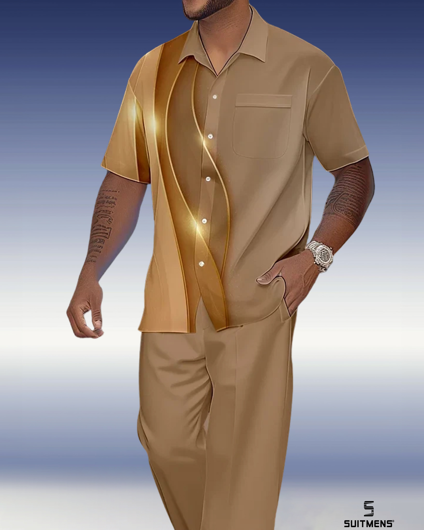 Men's Gradient Print Short Sleeve Shirt Walking Suit 1079