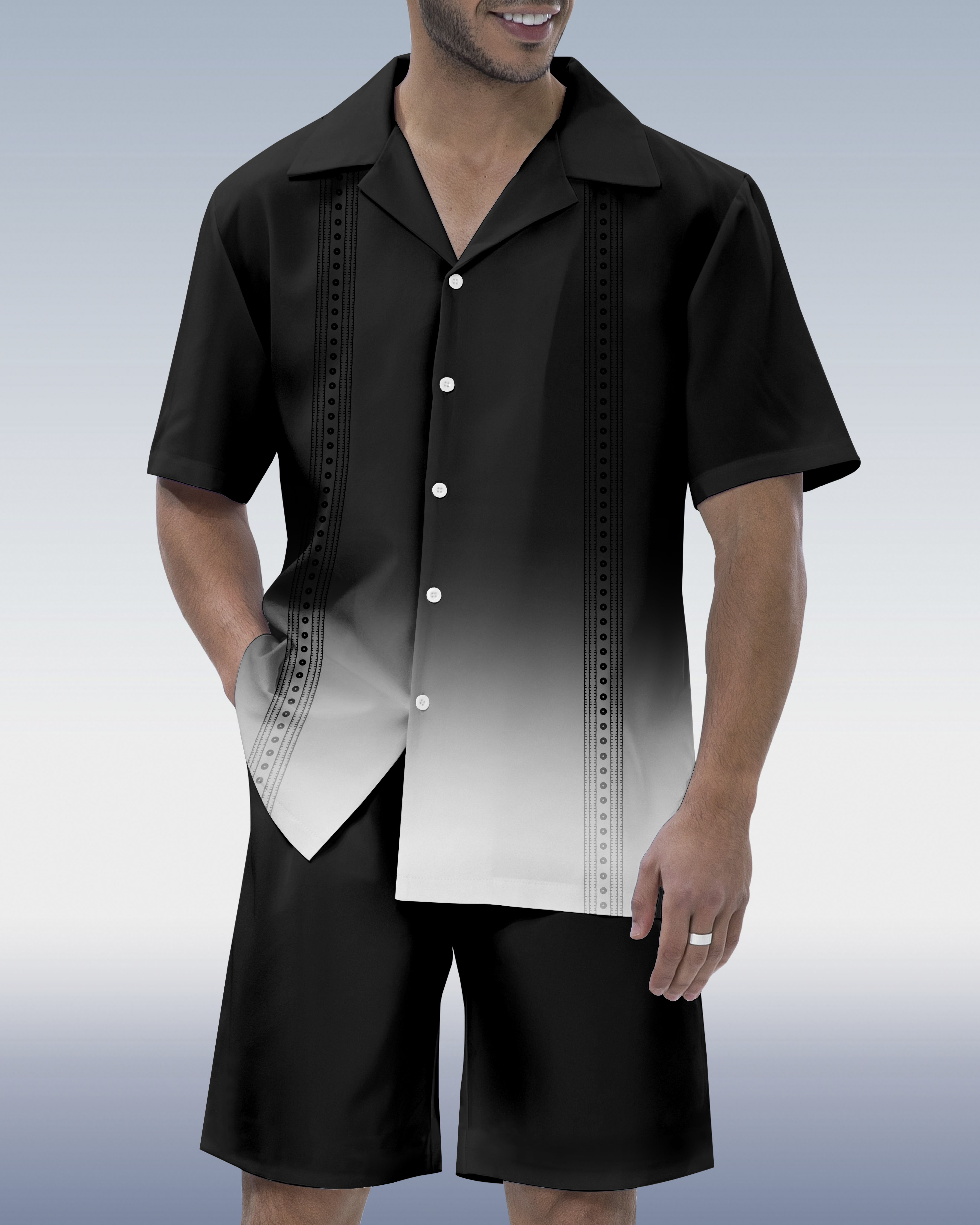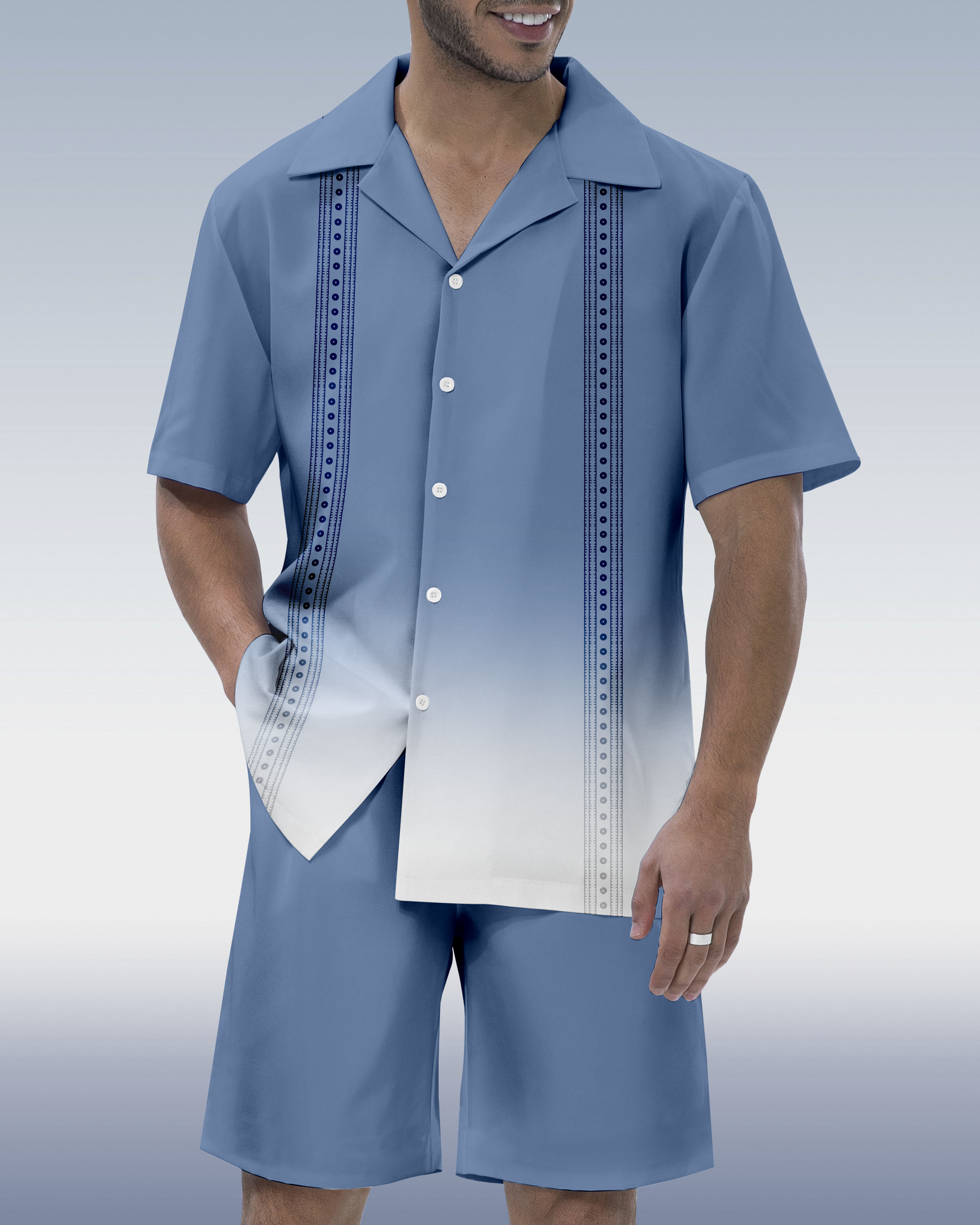 Men's Gradient Race Stripe Print Hawaiian Cuban Collar Short Sleeve Shirt Set