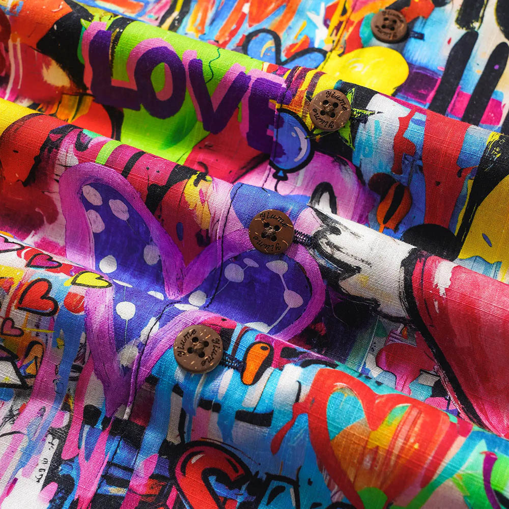 Express emotions through graffiti art-inspired designs on our shirts, reimagining visual symbols of "love, freedom, and joy". Break aesthetic boundaries with casual hand-drawn graffiti strokes, layered irregularly yet rhythmically. The splashes and sprays mimic spontaneous artistry on a canvas, creating a "gentleman of artistic love" emblem. Wearable graffiti joy to stand out in artful sophistication and playful fun.