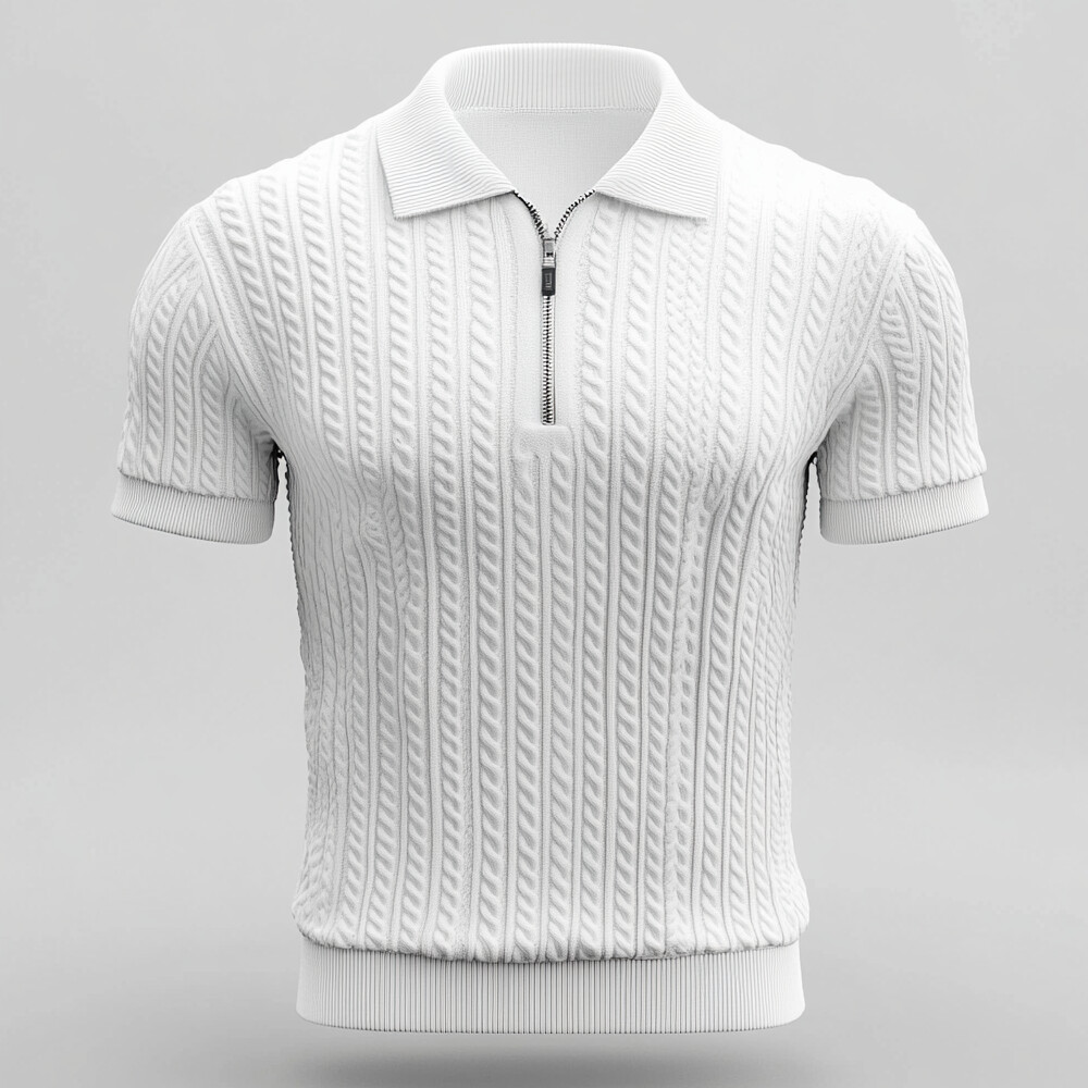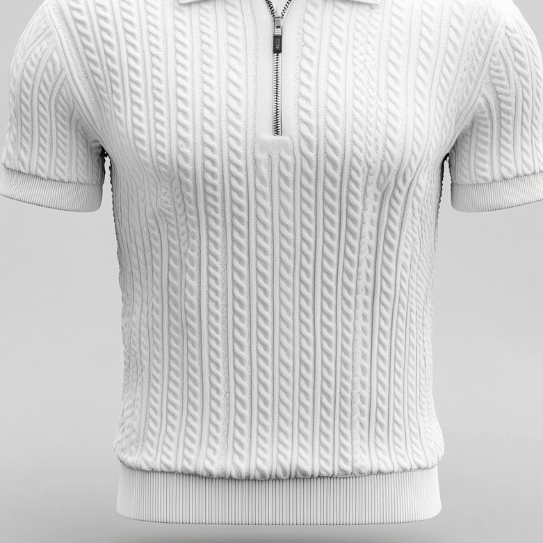 Men's Jacquard Knit Half Zip Short Sleeve Polo Shirt