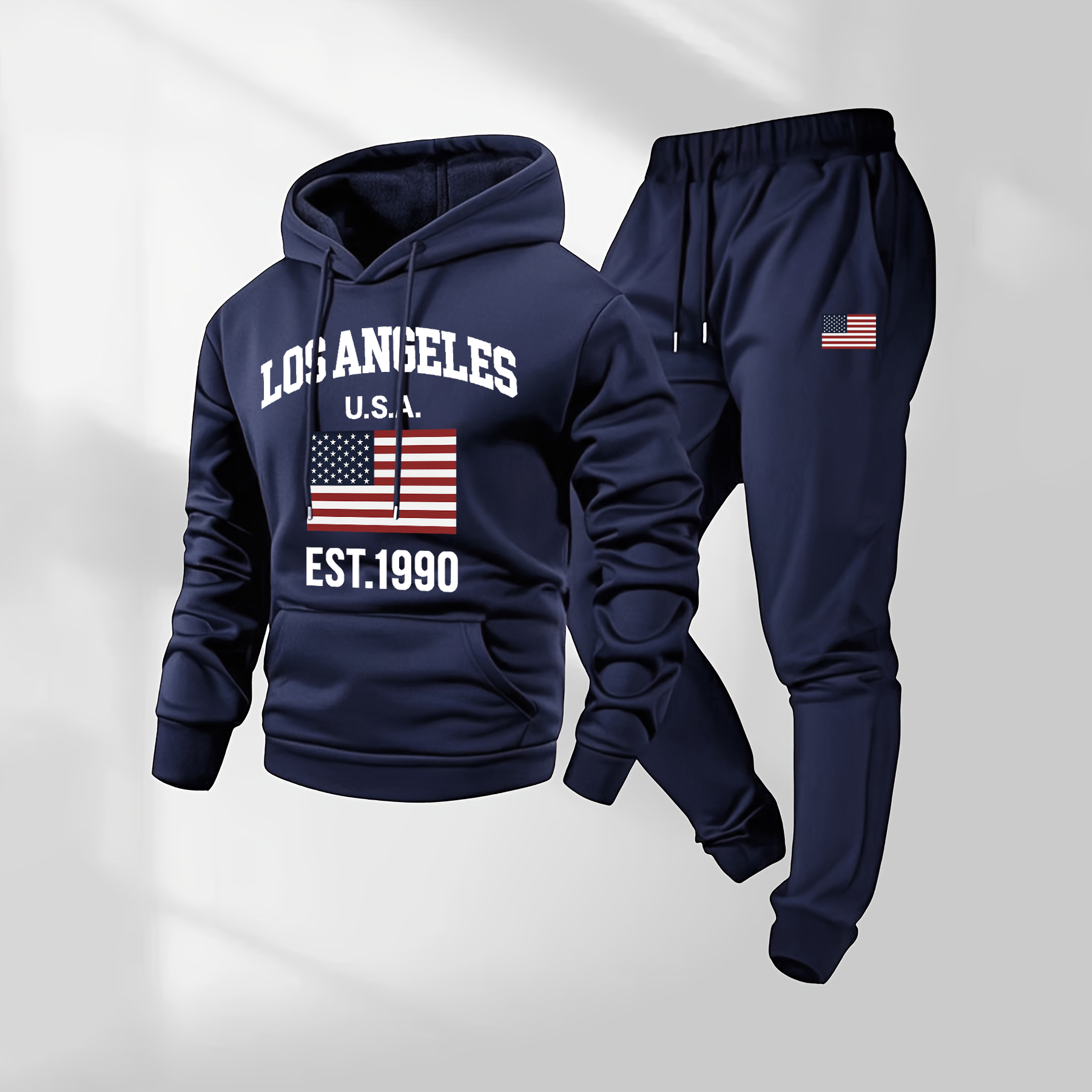 Men's Los Angeles USA Letter Print Hoodie and Drawstring Sweatpants Set, Menswear, Casual Athletic Long Sleeve Hooded Jacket & Trousers for Fall & Winter, Men's Clothing for Daily Wear, Sportswear Indoor Outdoor, Tracksuit, Athleisure