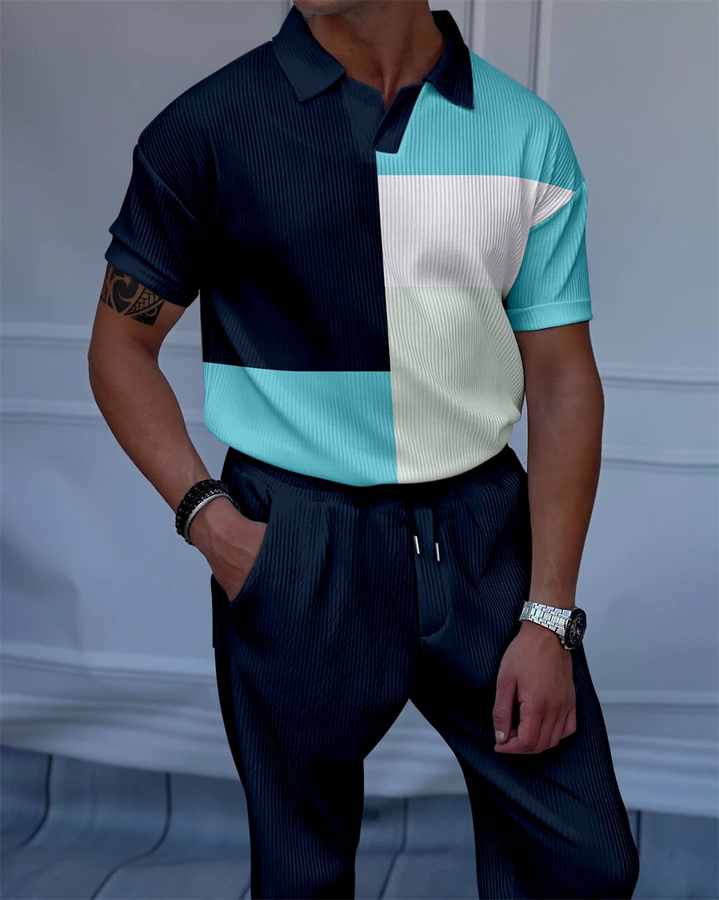 Men's Luxury Casual Textured Polo Short Sleeve Suit - 081