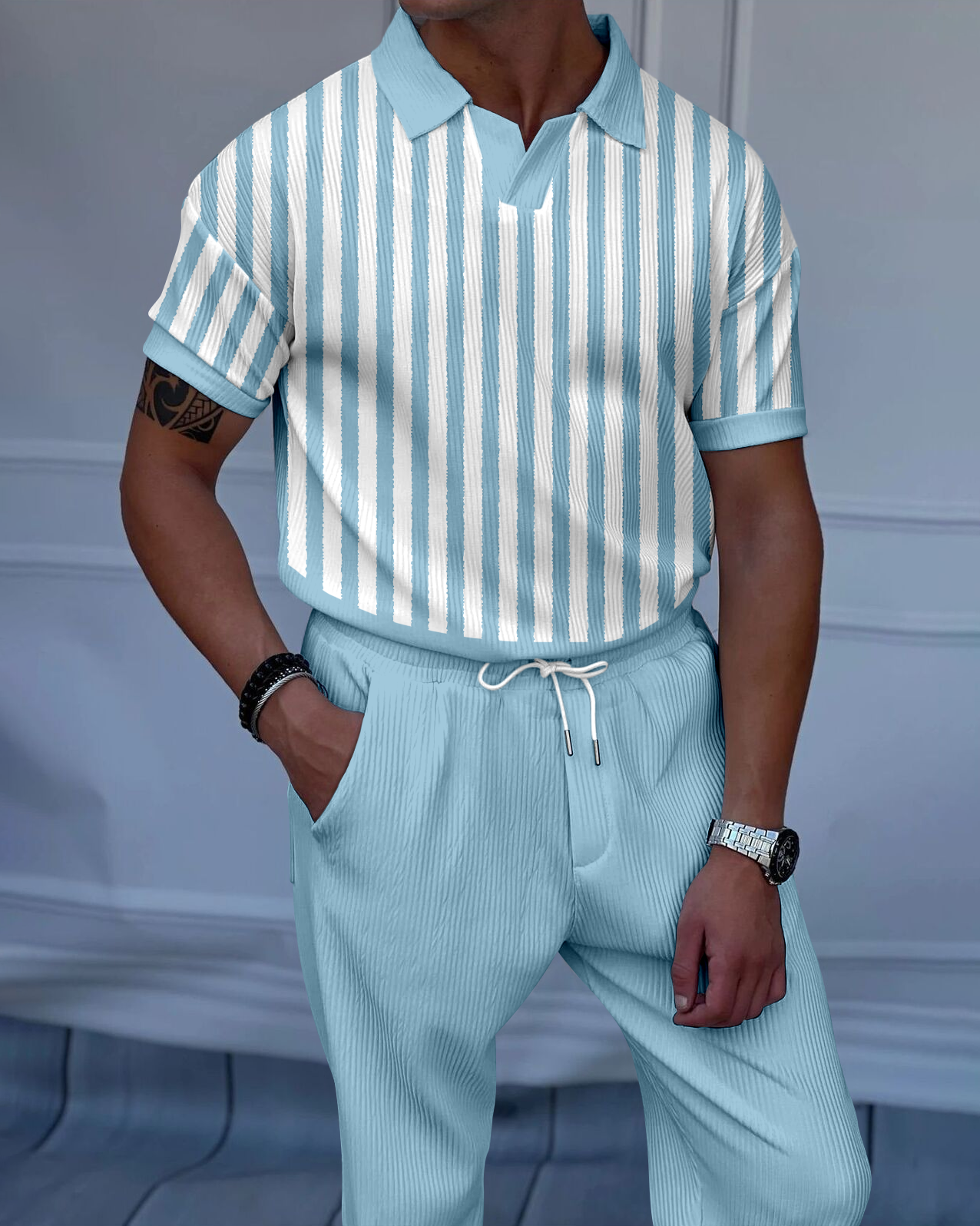 Men's Luxury Casual Textured Polo Short Sleeve Suit - 084