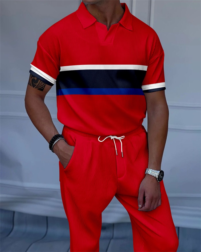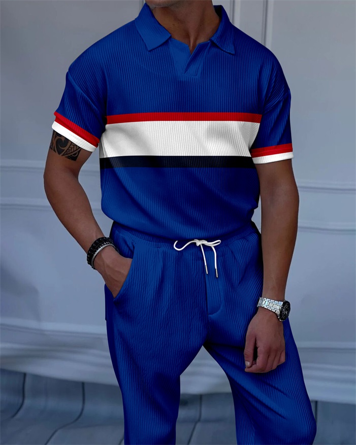 Men's Luxury Casual Textured Polo Short Sleeve Suit - 129