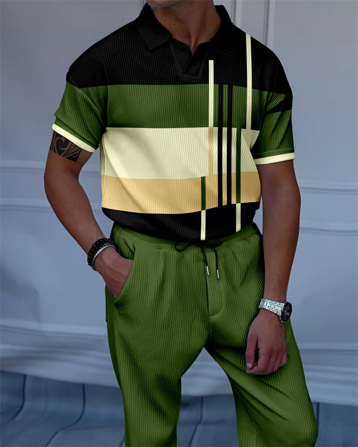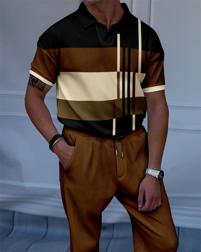 Men's Luxury Casual Textured Polo Short Sleeve Suit - 131
