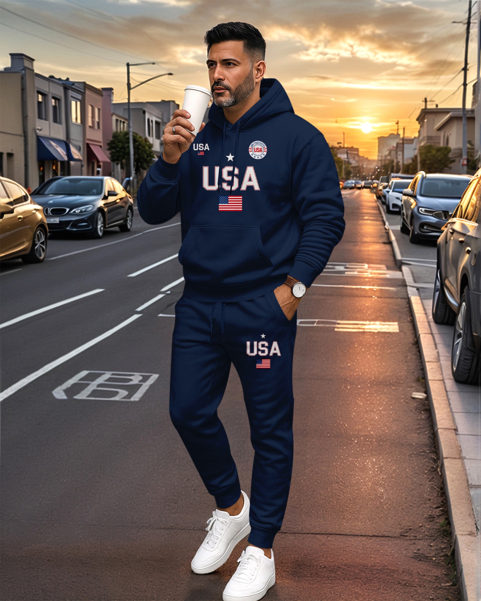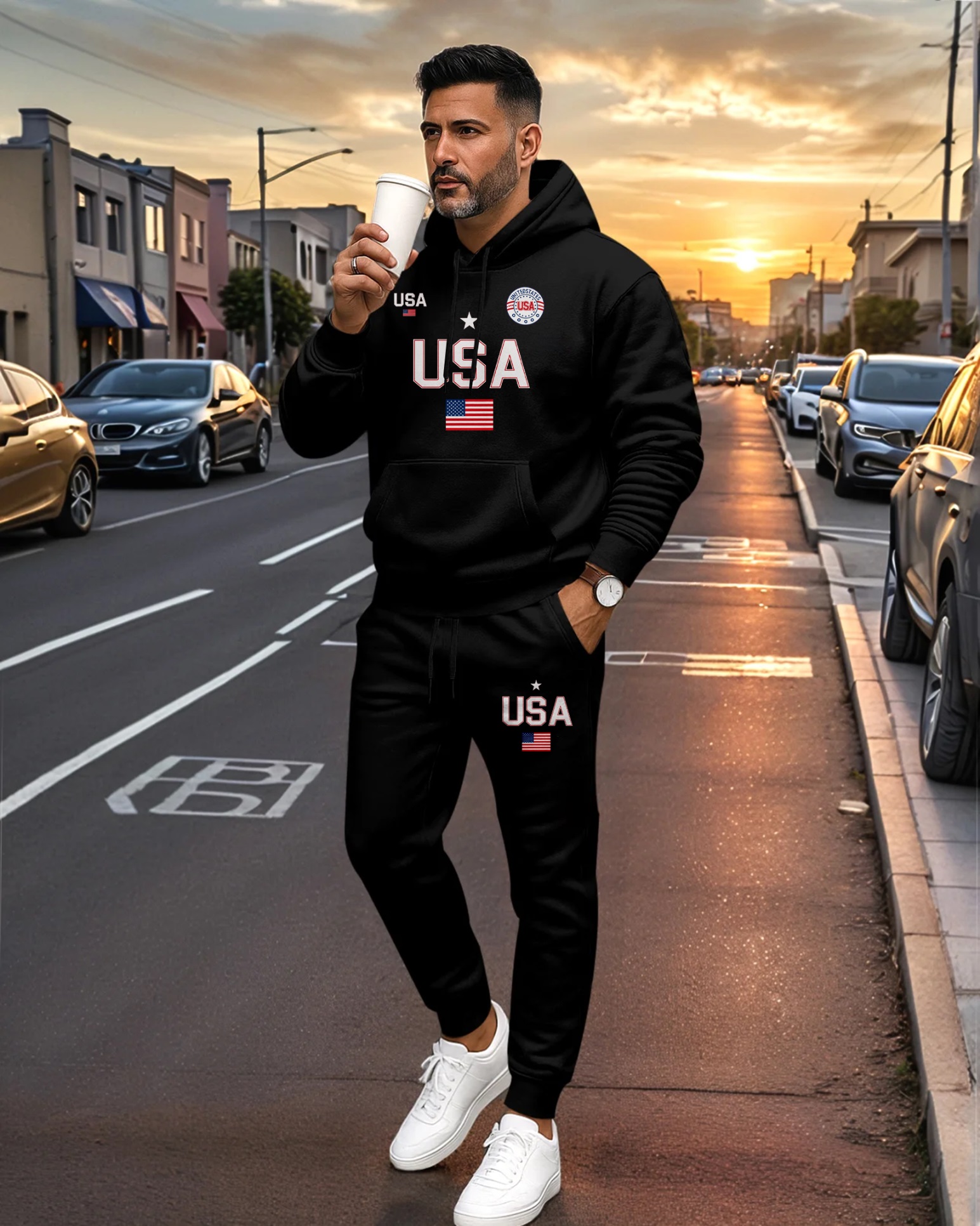 Men's Printed Hoodie And Drawstring Sweatpants Set 07