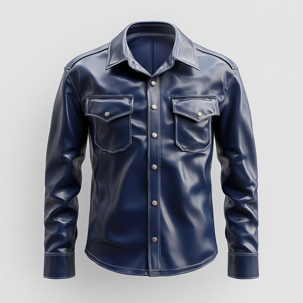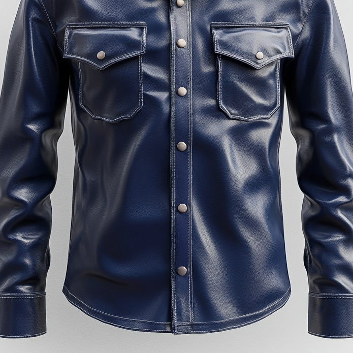 Men's PU Leather Solid Flap Pocket Button Long Sleeve Shirt