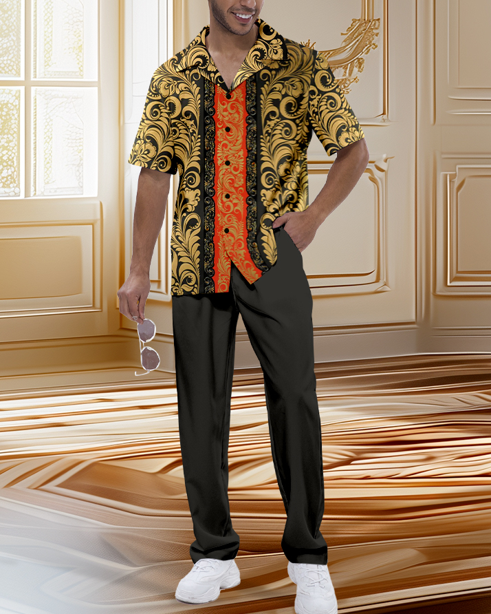 Men's Retro Luxury Short Sleeve Shirt Walking Suit 1119