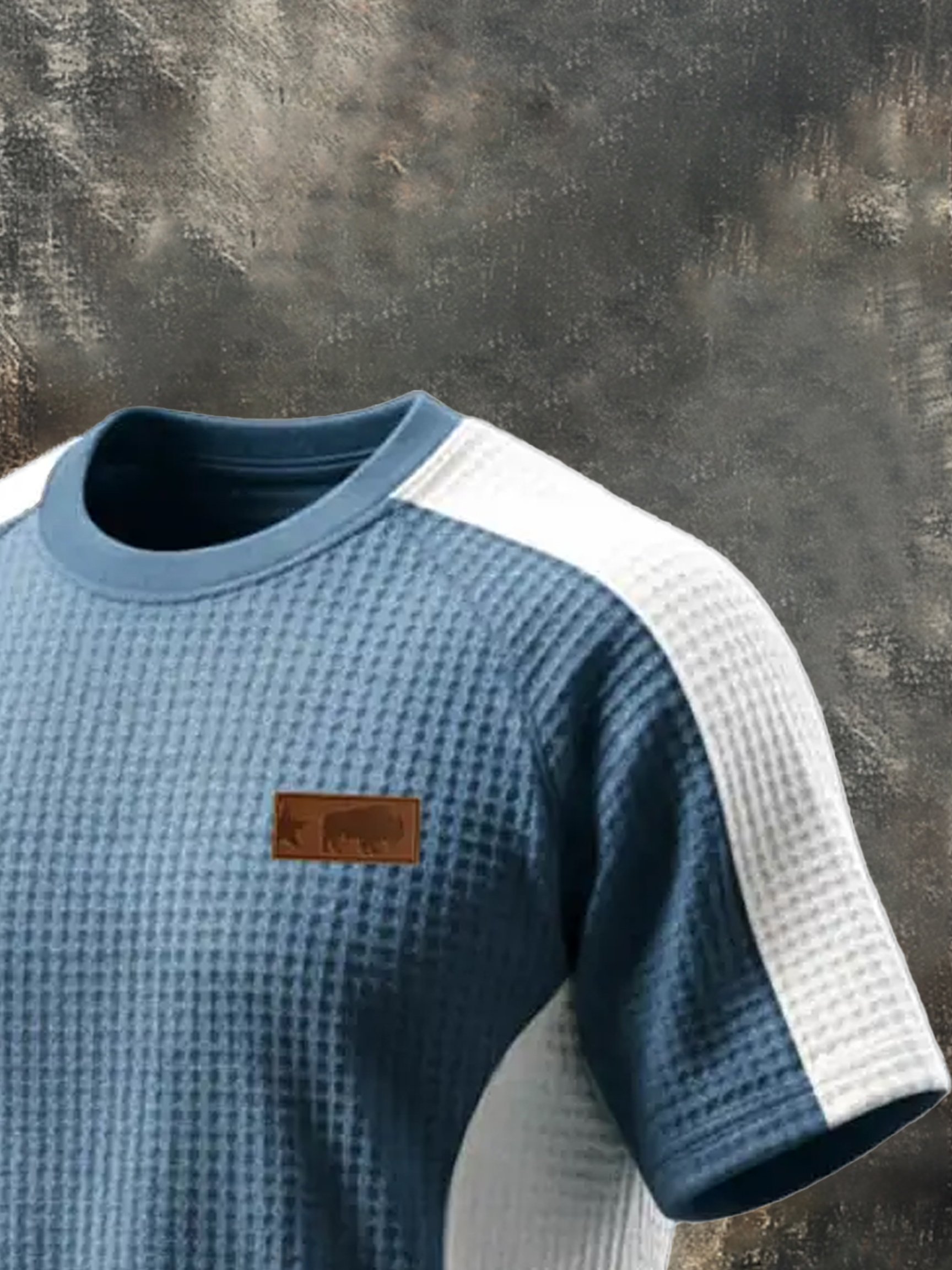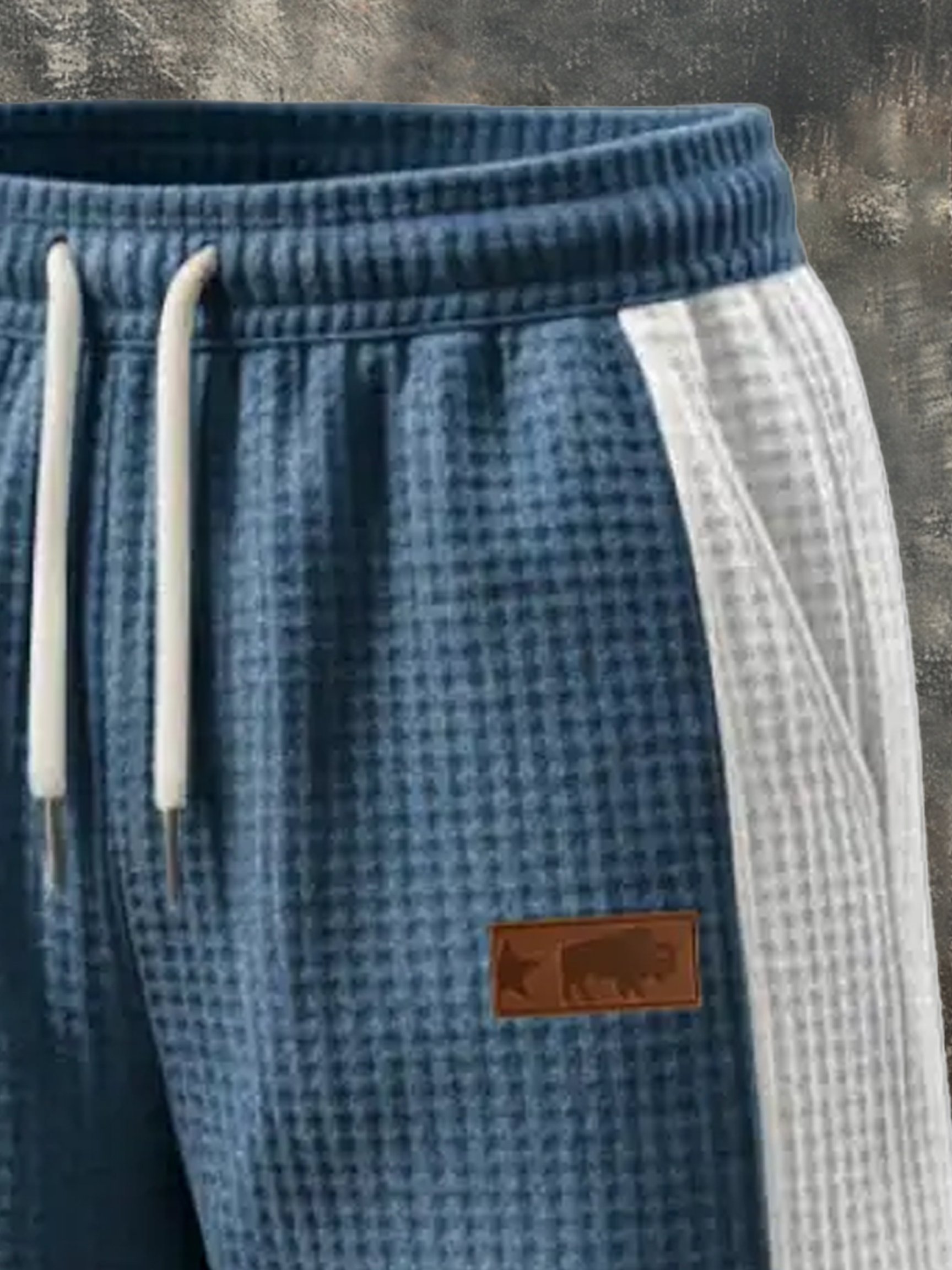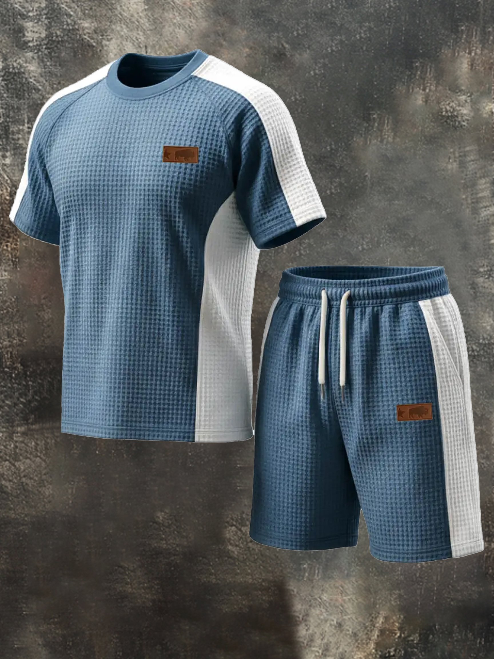 Men's Retro Waffle Color-Blocking Casual Suit (Short Sleeves + Elastic Waist Shorts)