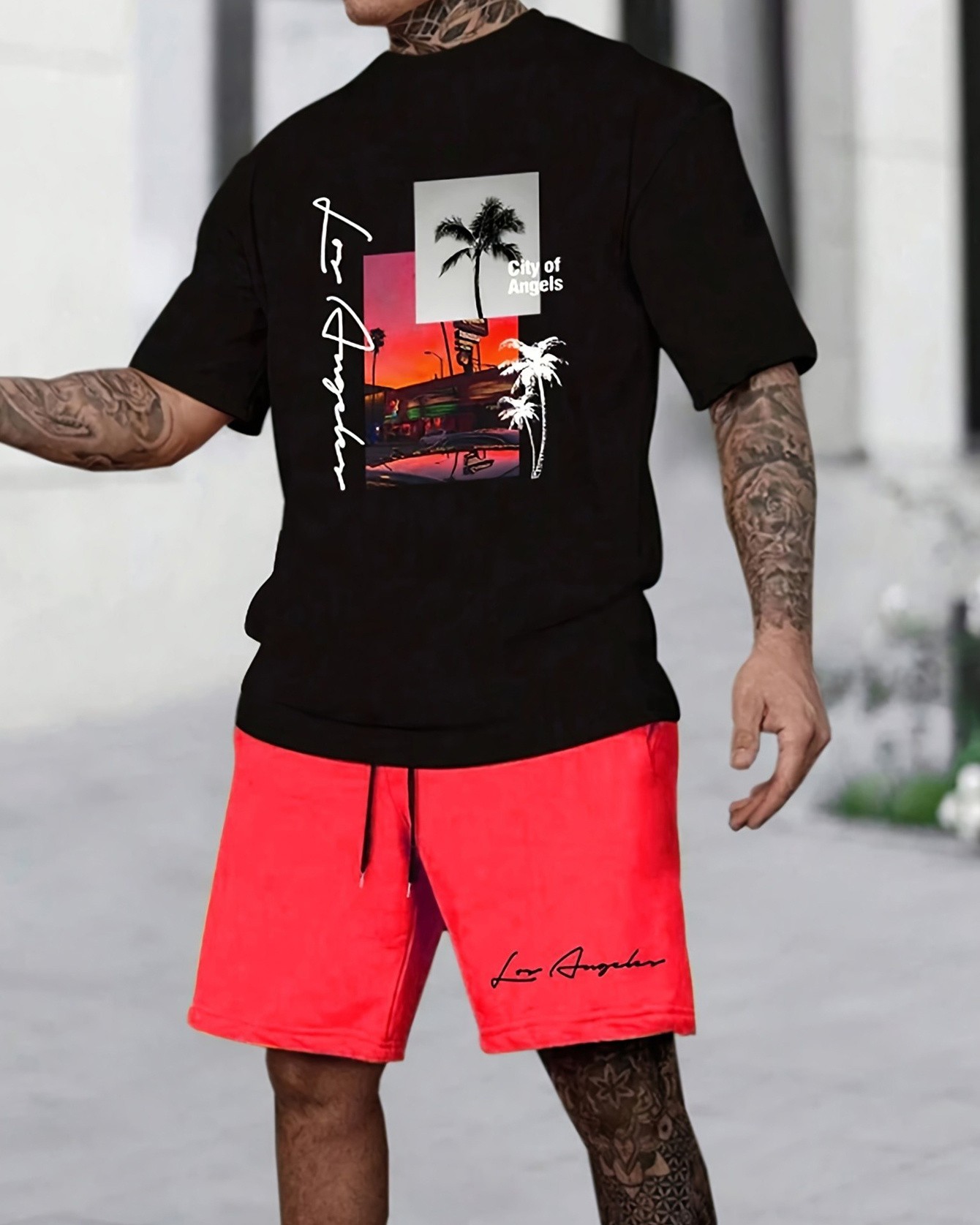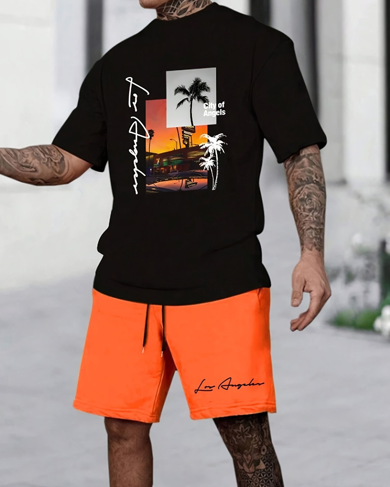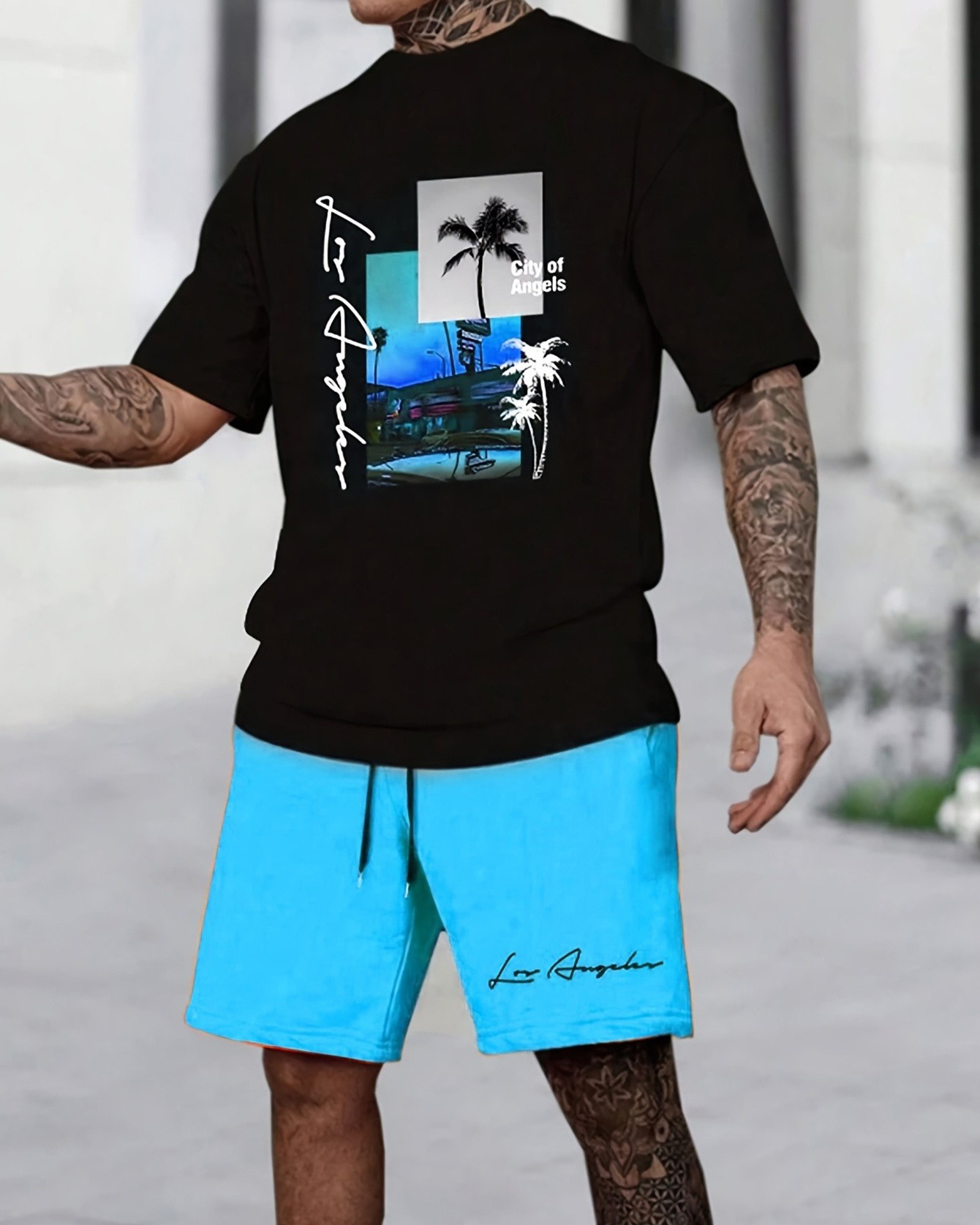 Care Instructions: Machine Wash in Cold Water. Dark and Light Colors Should Be Washed Separately.Package Included: 1*T-shirt, 1*Shorts