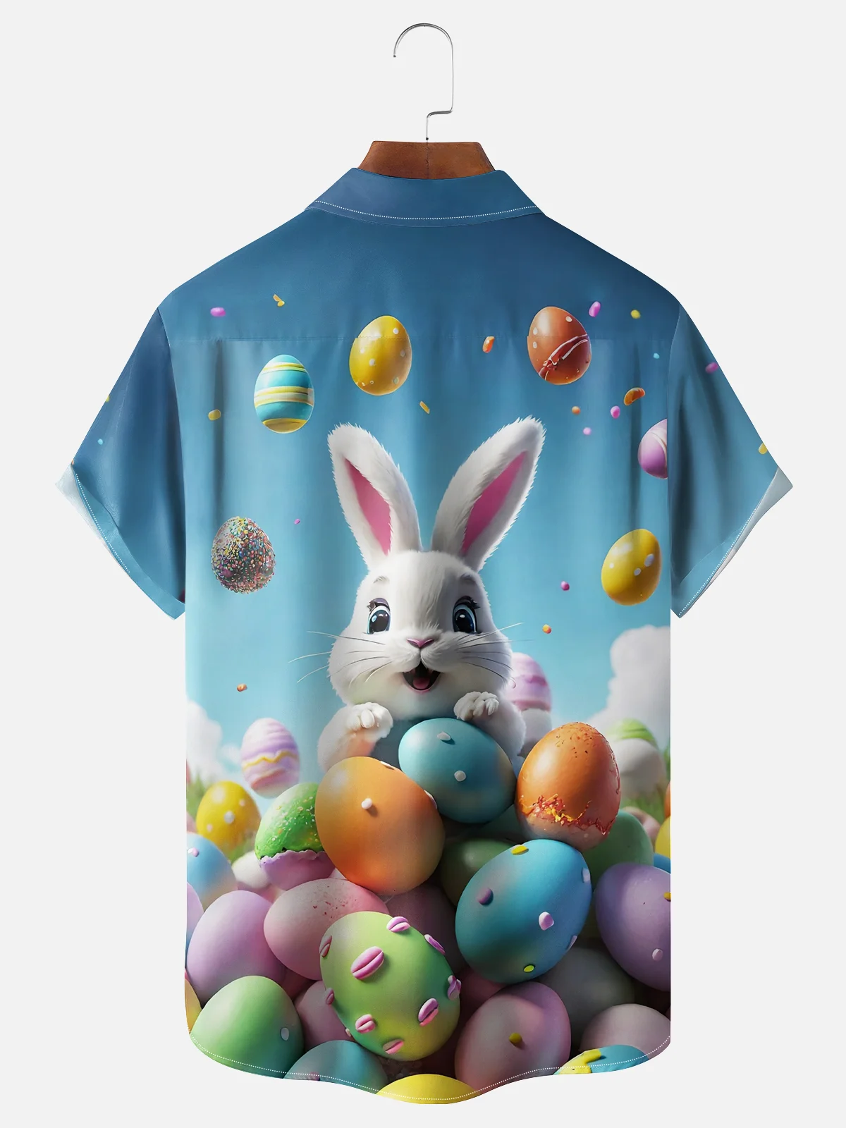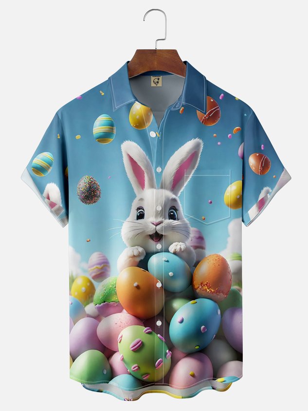 Moisture-wicking Easter Rabbit Eggs Chest Pocket Casual Shirt