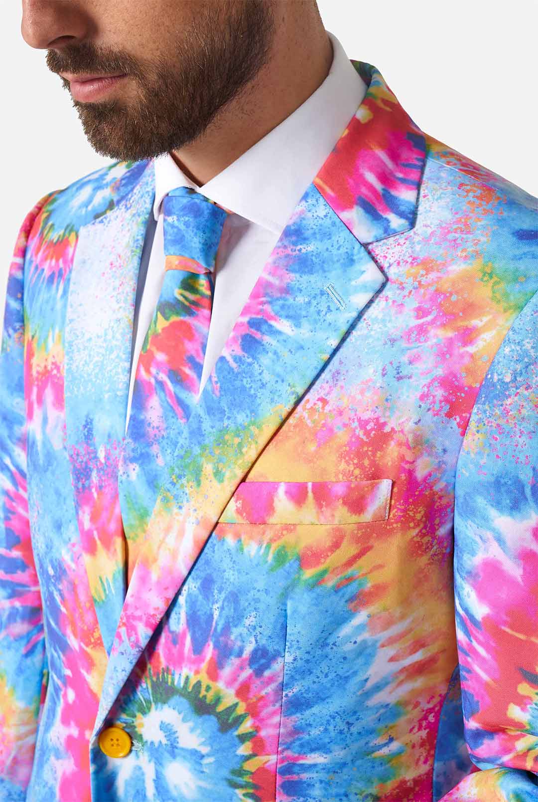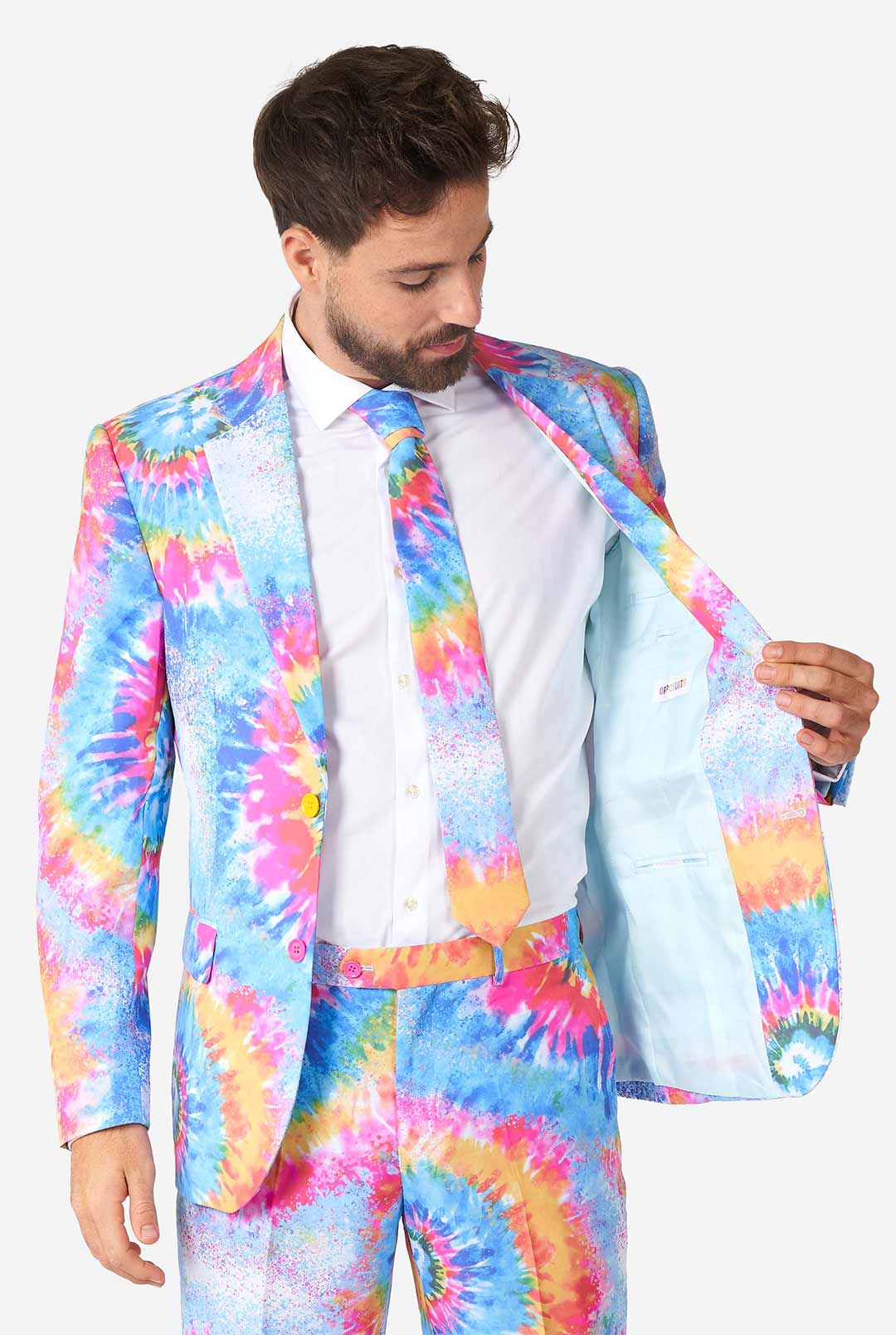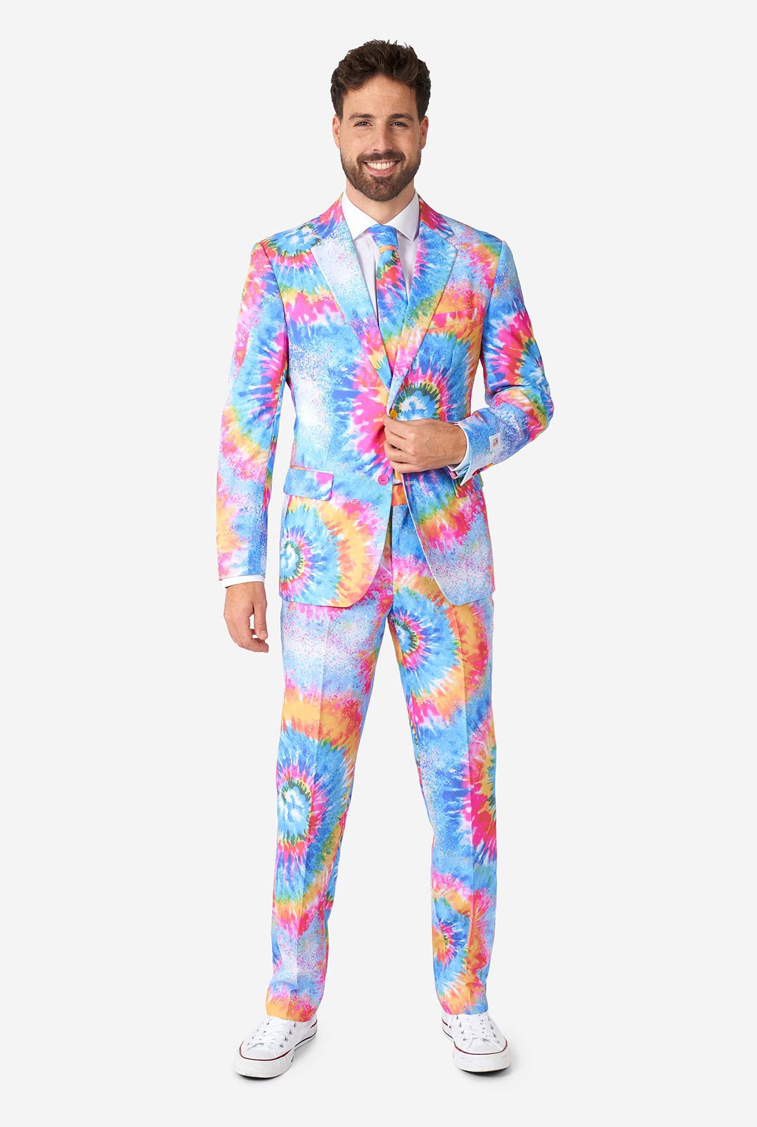 Look far out and hip in this tie dye suit, inspired by the wonders of the 60s hippie movement. These pastel colors are sure to turn some heads and spark conversation. If spreading some joy is all you’re here for, Mr. Tie Dye is a great companion to have. Peace, man!