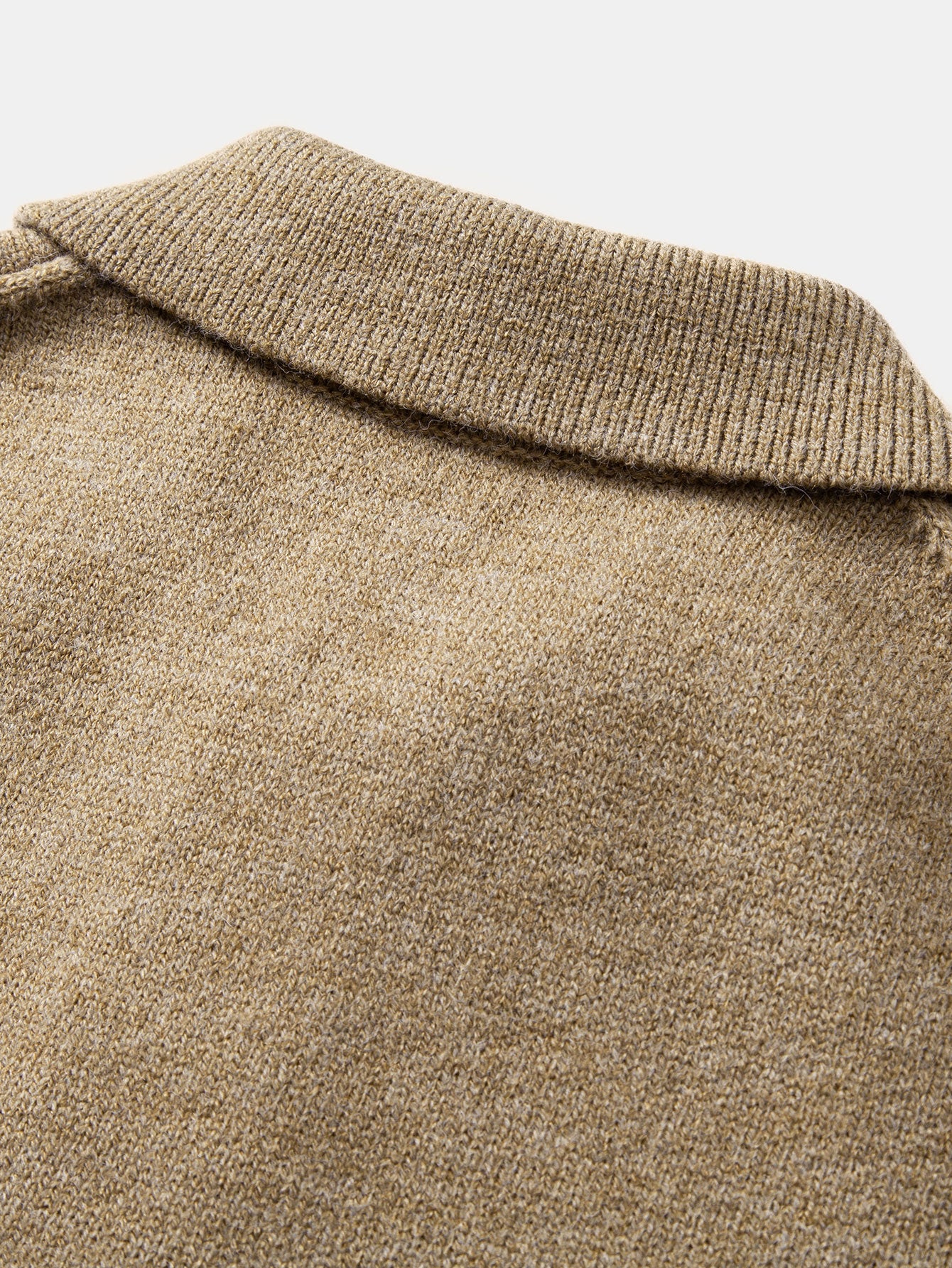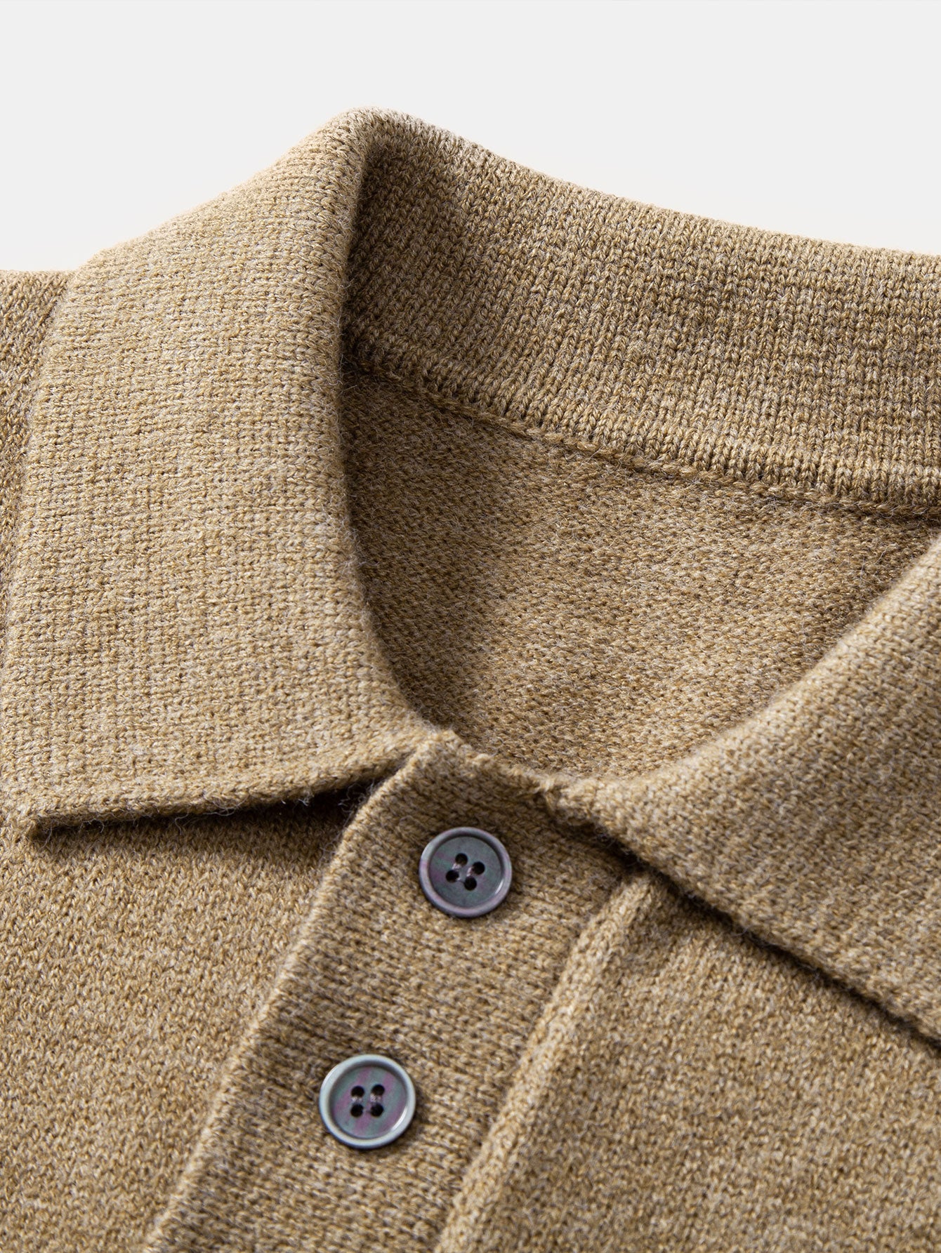 This knitted polo shirt is an excellent choice for stylish autumn and winter outfits. The classic collar and three-button placket offer a simple yet retro feel, while the ribbed hem and cuffs provide a comfortable, form-fitting silhouette that resists stretching. The fine knit texture is soft and gentle against the skin, offering the warmth of a sweater but with a more refined look than a regular polo shirt. It can be worn alone for a relaxed look or layered for added depth and style.
