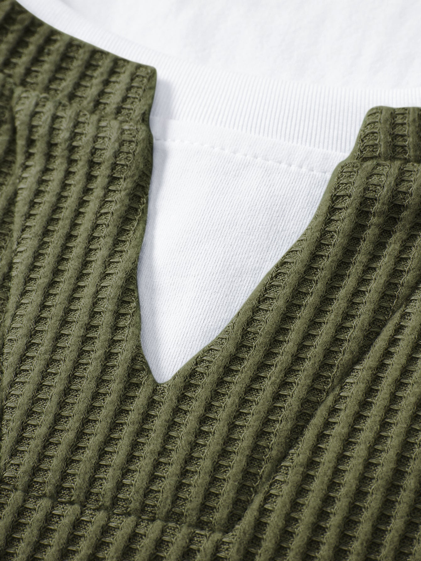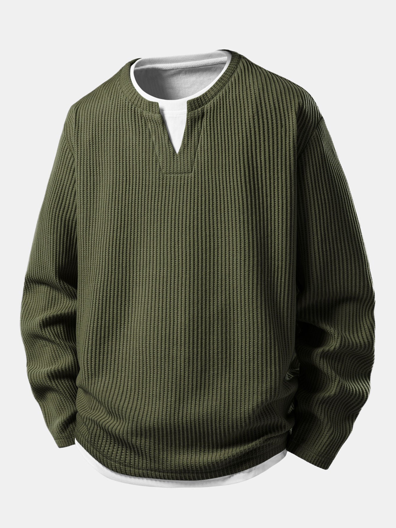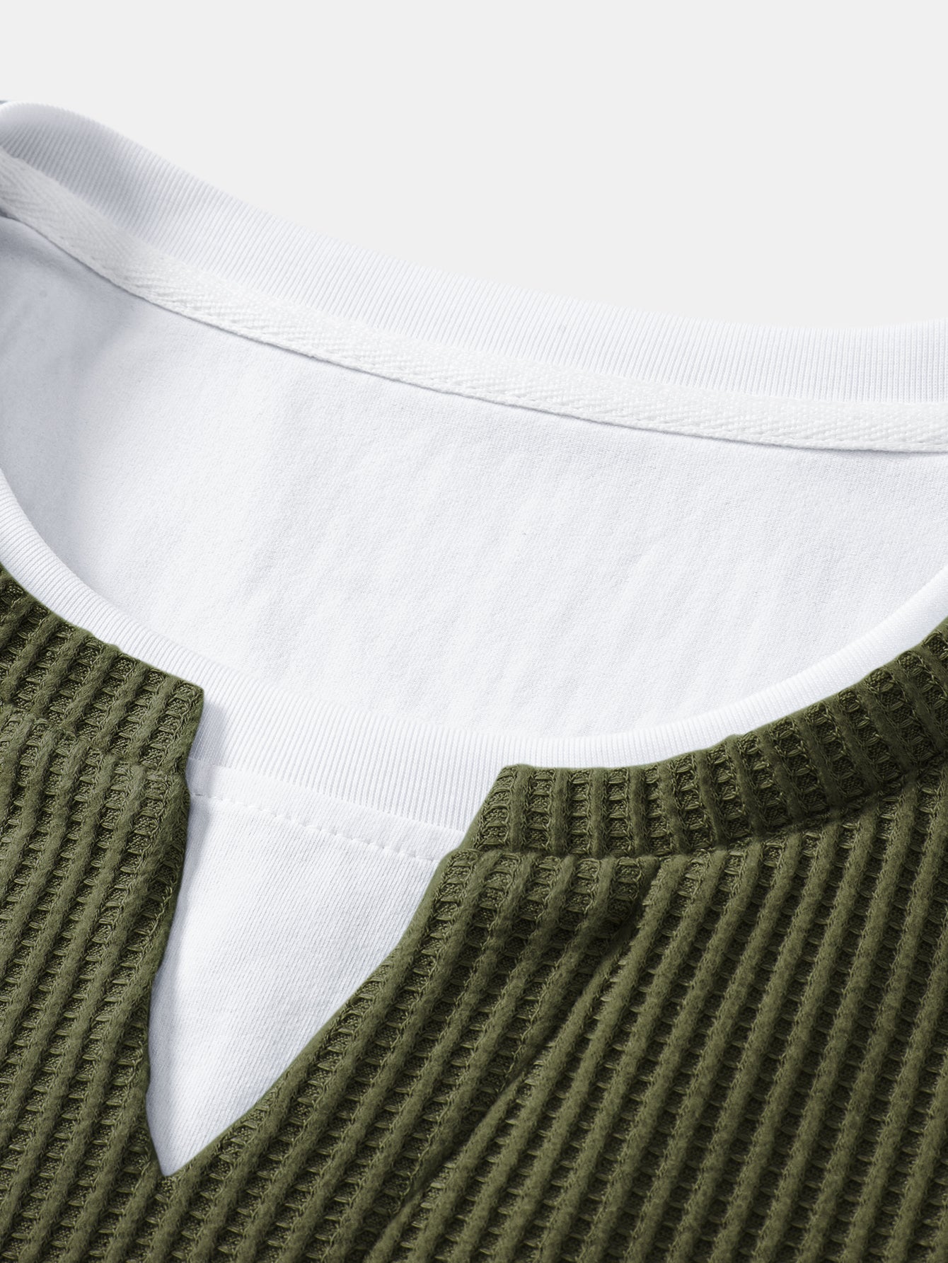 The 2-in-1 notched collar T-shirt features a relaxed fit with a layered-look design that adds depth and modern appeal, while the drawstring knitted waffle pants offer comfort and flexibility with a soft, breathable feel. Perfect for lounging, casual outings, or laid-back streetwear looks, this set combines texture, comfort, and contemporary style.