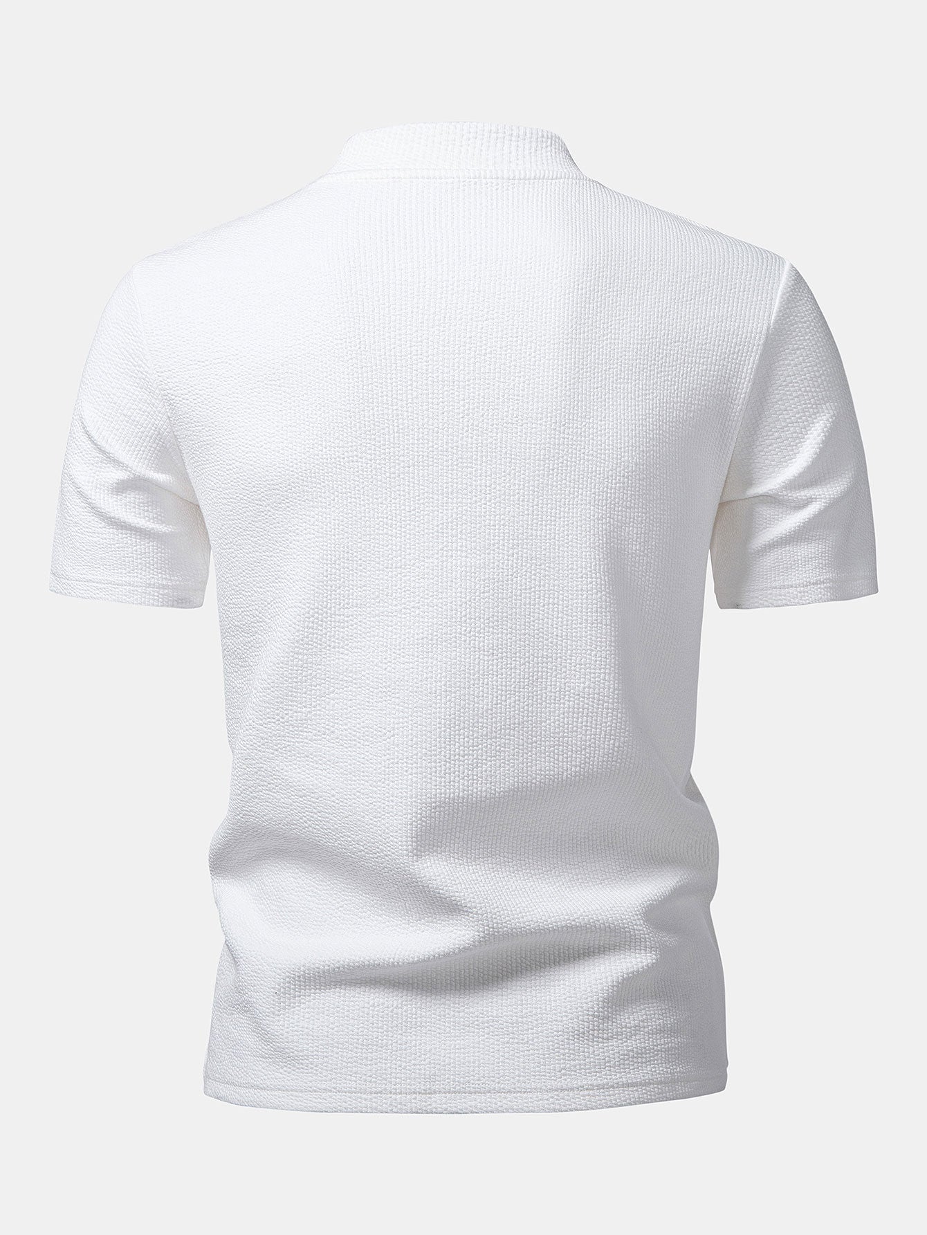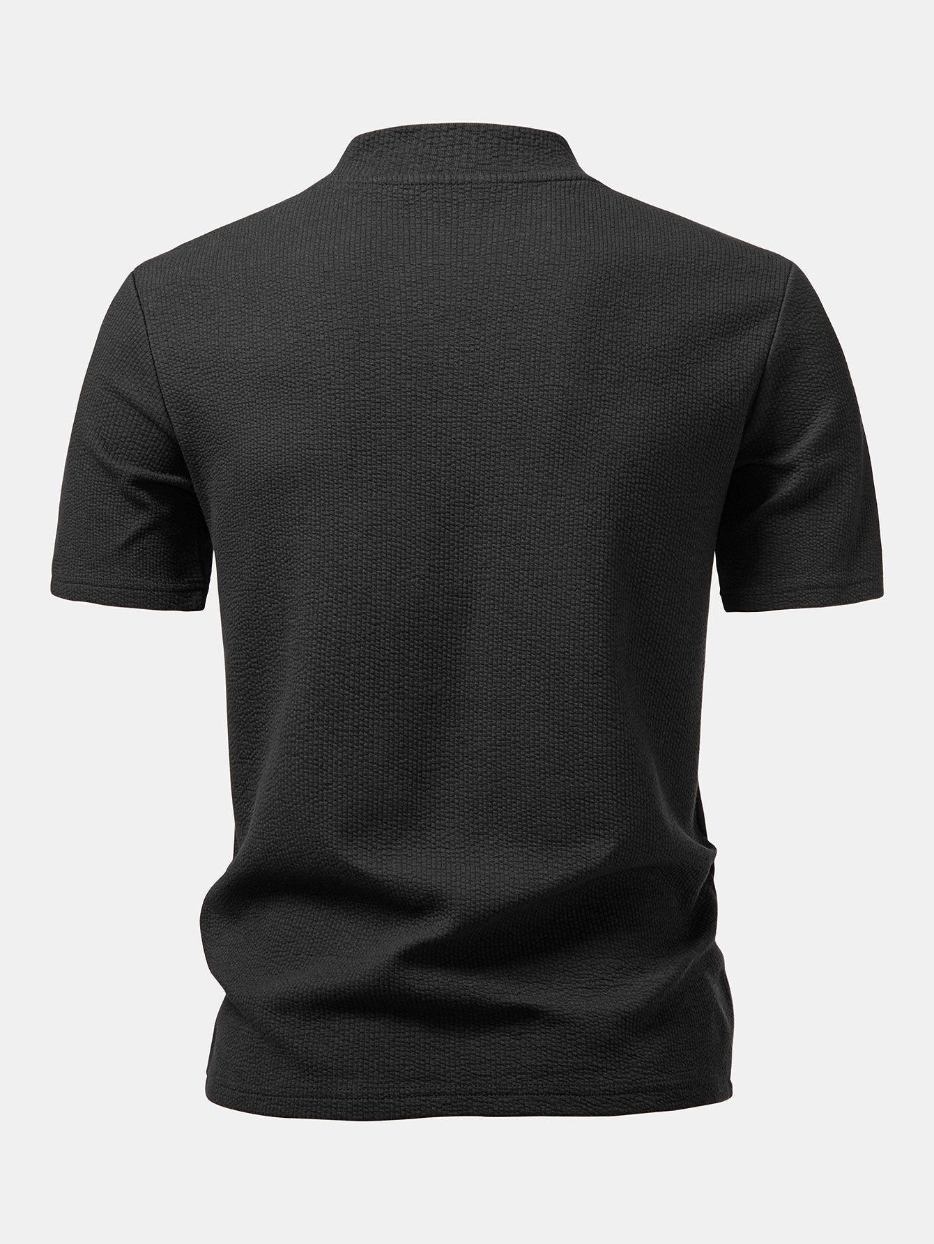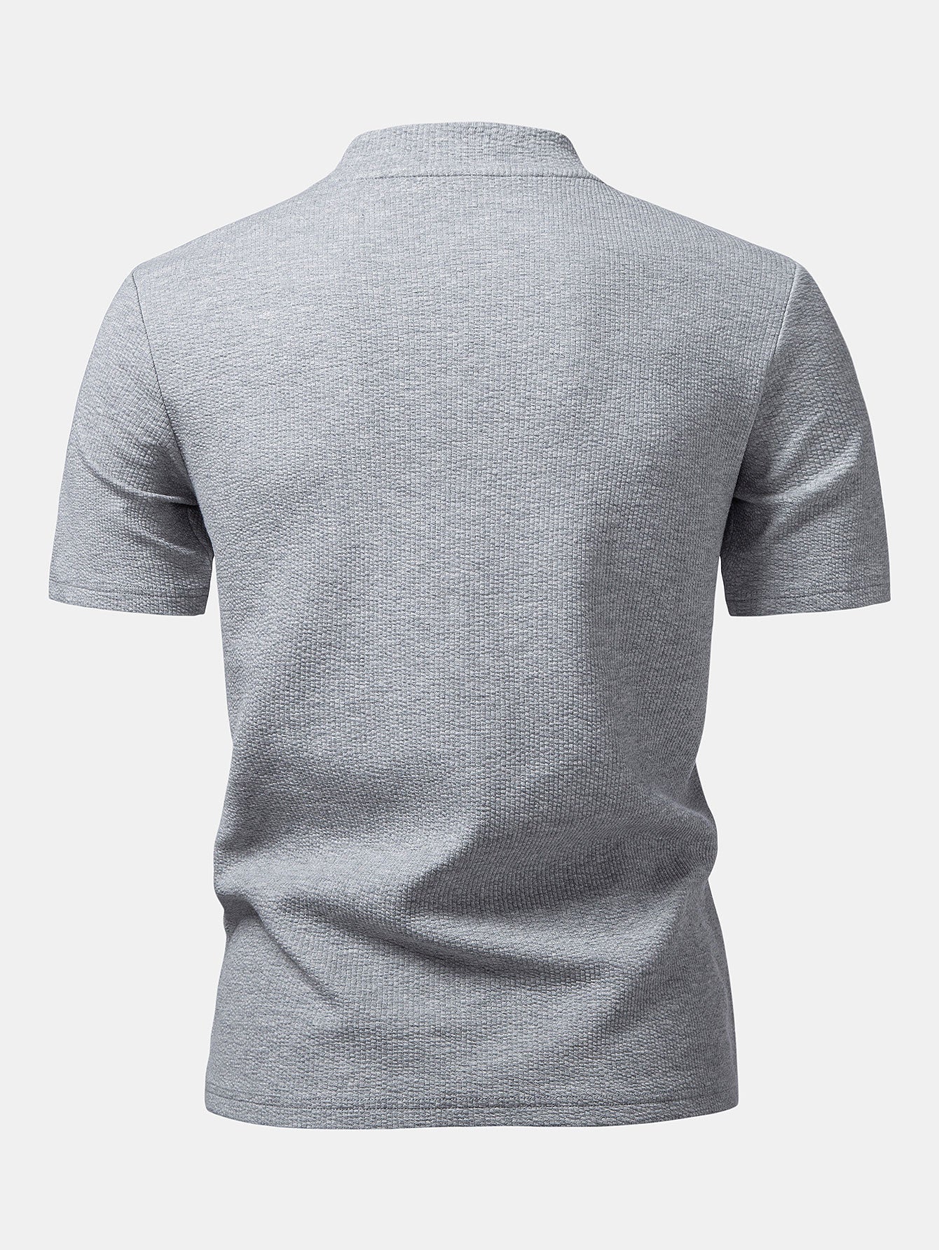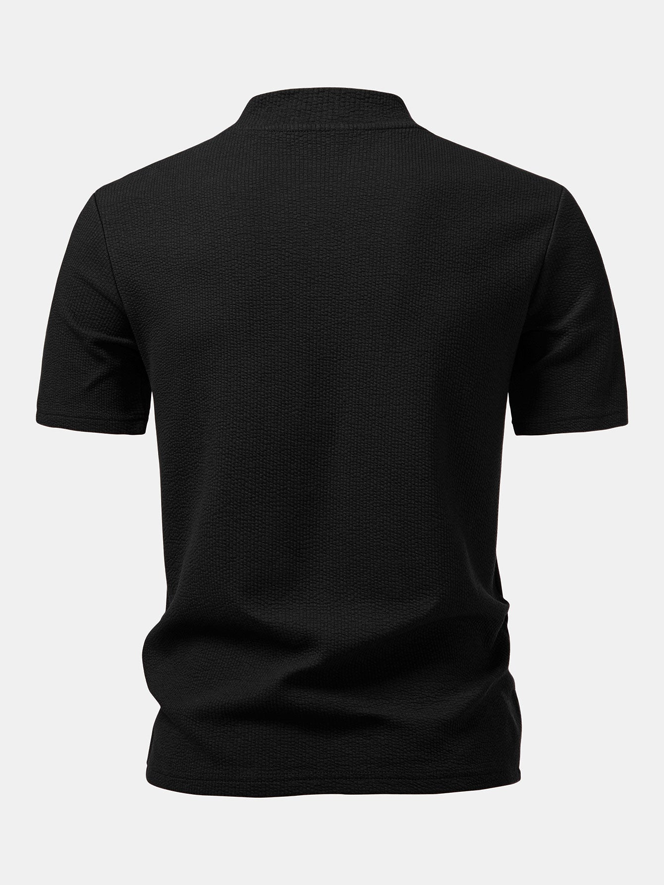 Crafted from soft, breathable fabric with a subtle textured finish, this T-shirt delivers both comfort and modern style. The mock neck design adds a refined touch, making it perfect for casual wear or elevated smart-casual looks.