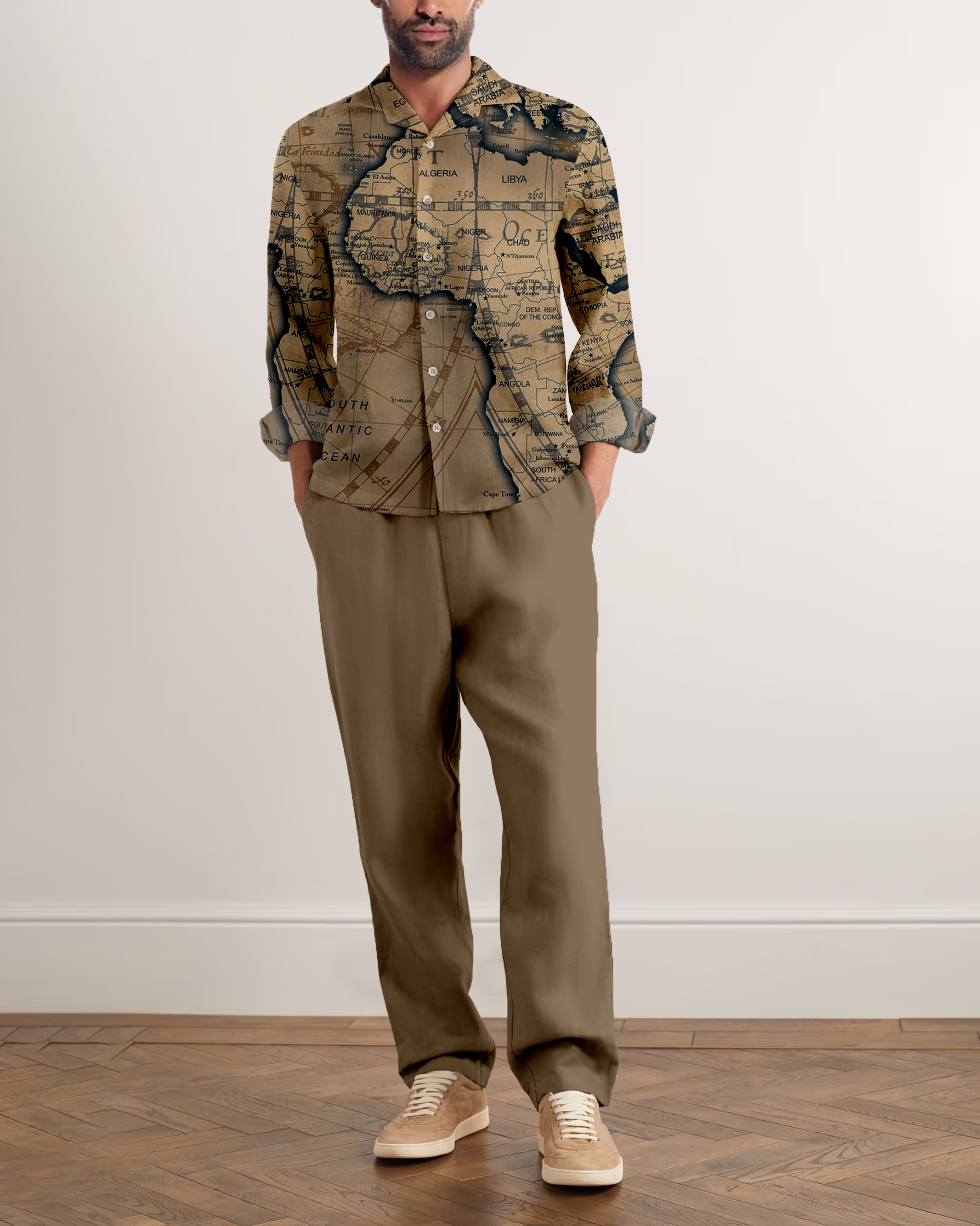 Suitmens Men's Nostalgic Nautical Map Long Sleeve Suit-0006