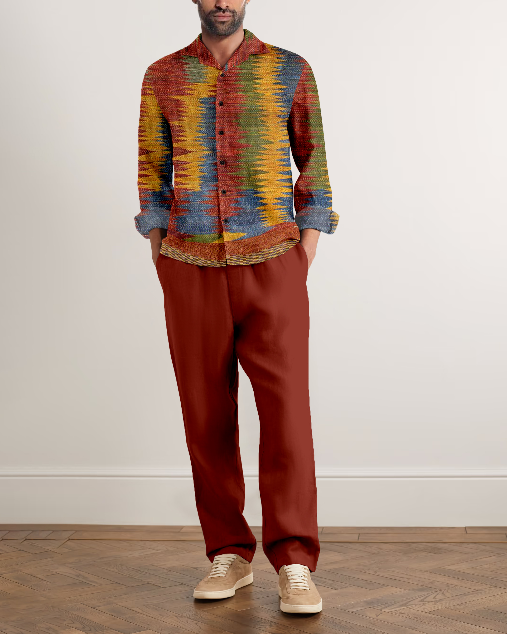 Suitmens Men's Retro Texture Long Sleeve Walking Suits-0130