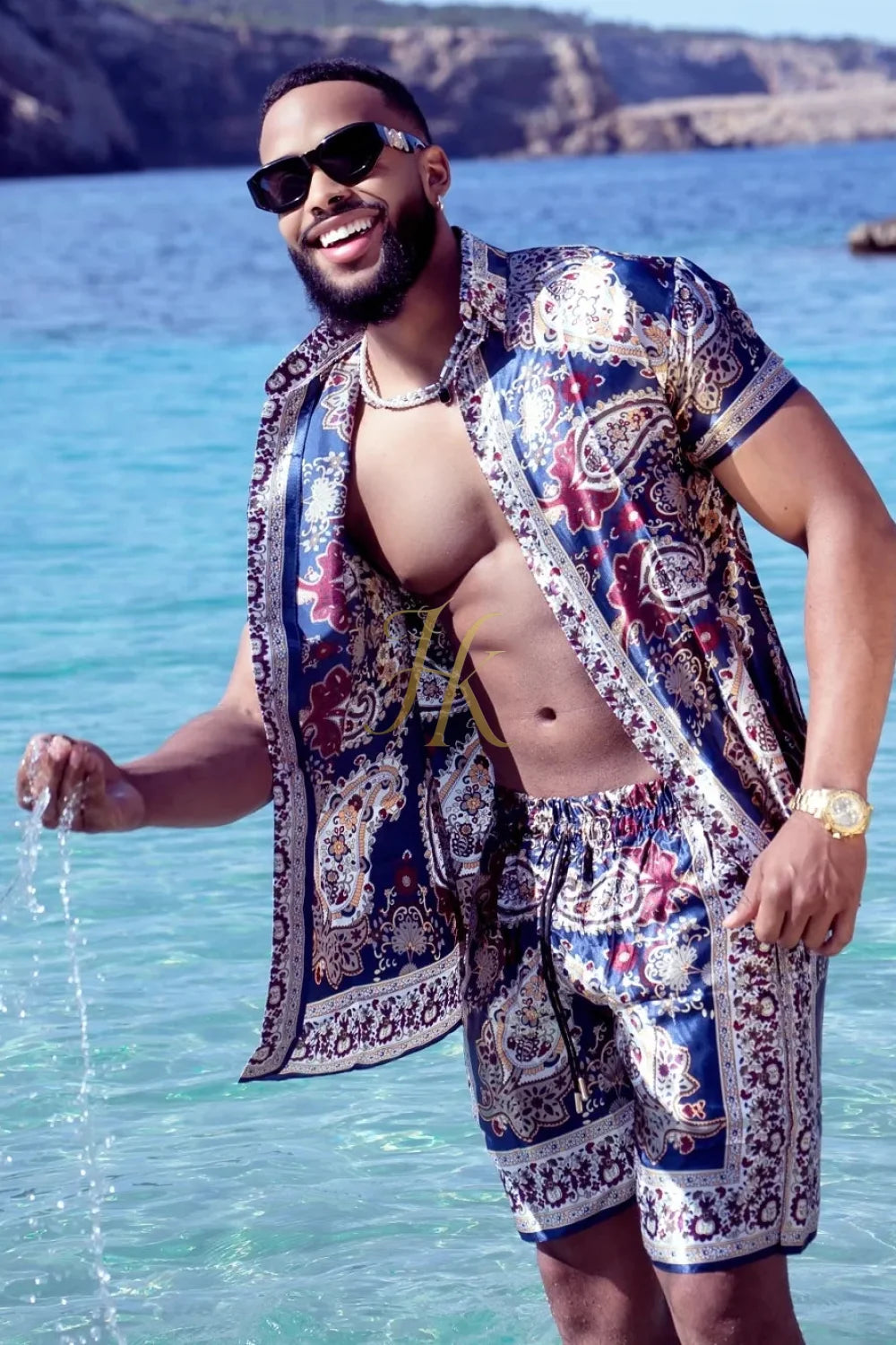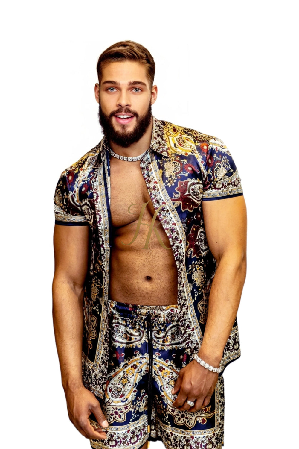 Elevate your style this summer with our Men's Silk Set - Le Barroco Model - Baroque Print. Made from 100% silk, this two-piece set is not only soft and skin-friendly but also boasts a refined look full of class and style. The Le Barroco baroque print adds a touch of color and vibrancy to your everyday looks, making it perfect for the summer season. Whether you're lounging at home or out and about, this set is sure to keep you cool and looking flawless all summer long.