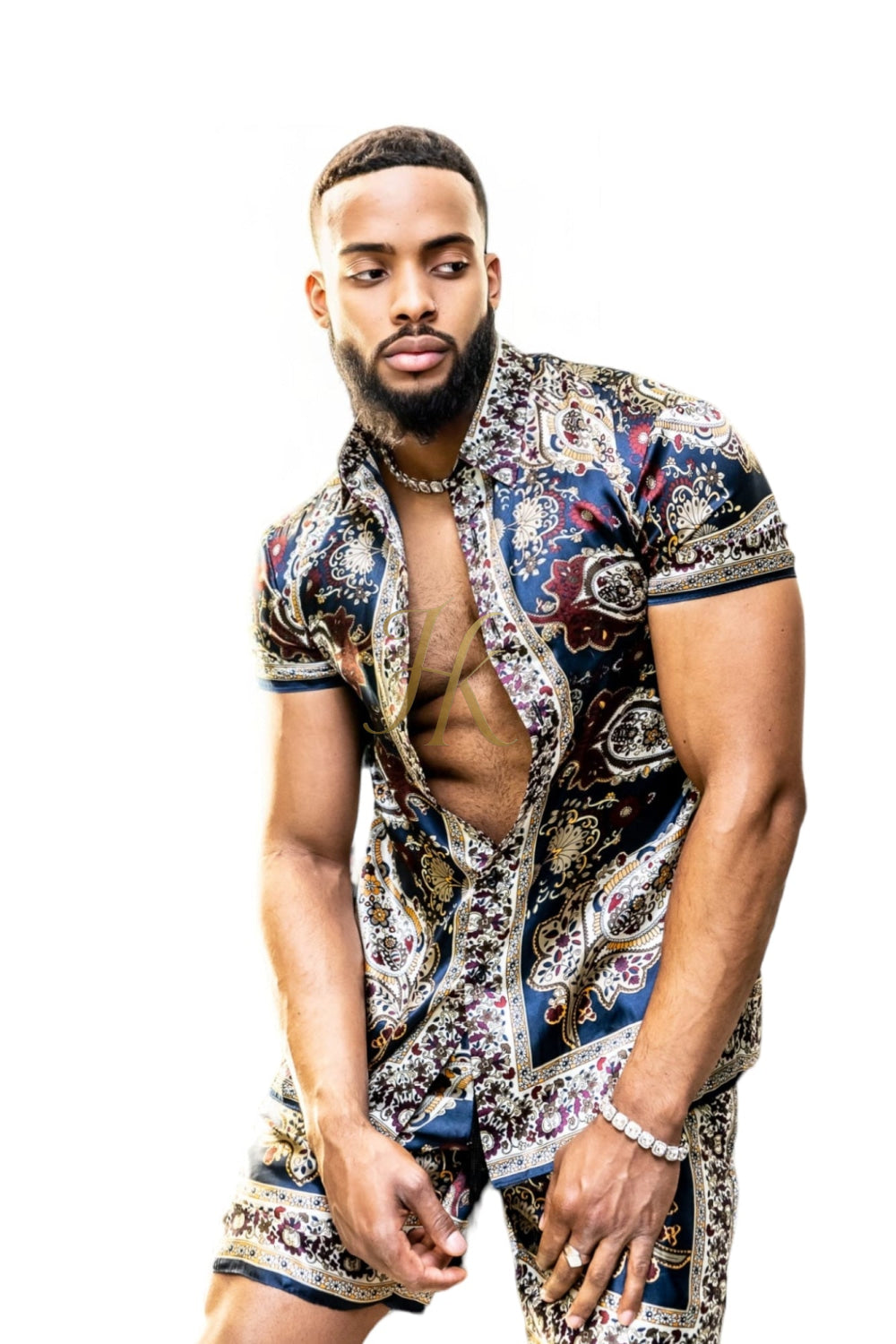 All our products are made in Spain, ensuring the highest quality and attention to detail. At Kayib Shop, we believe in offering an alternative to conventional fashion, betting on originality and prints for your favorite garments. Our unique fabrics are the foundation for any model in our catalog, and this set is no exception. Take a step further and elevate your looks to the next level with our Men's Silk Set - Le Barroco Model - Baroque Print.