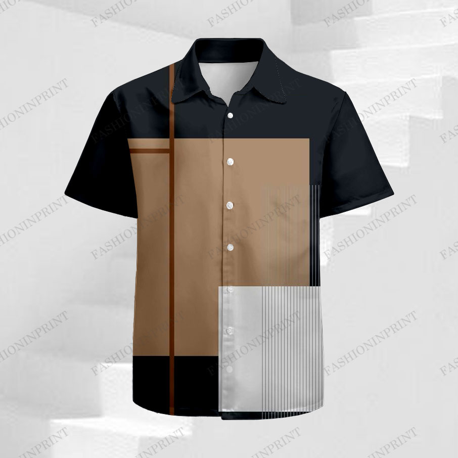 Men's Casual Black & Brown Color Matching Geometric Print Short-Sleeve Shirt