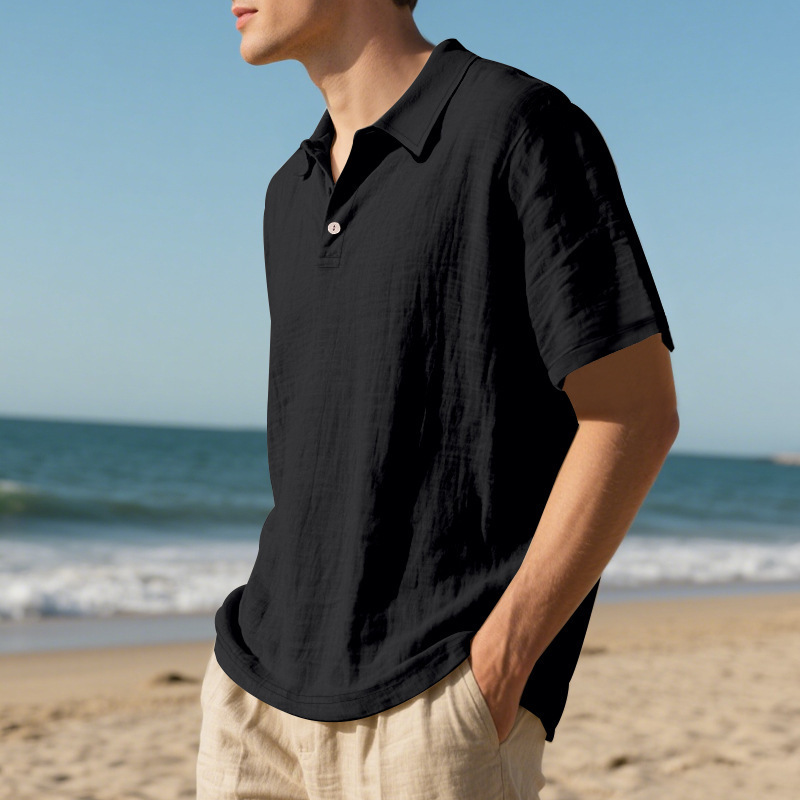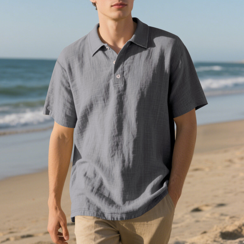 Men's Casual Button-Down Short-Sleeved Linen Collared Polo Shirt