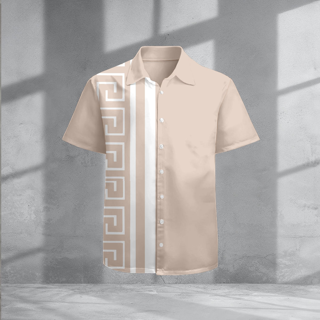 Men's Casual Apricot & White Color Matching Geometric Print Short-Sleeve Shirt