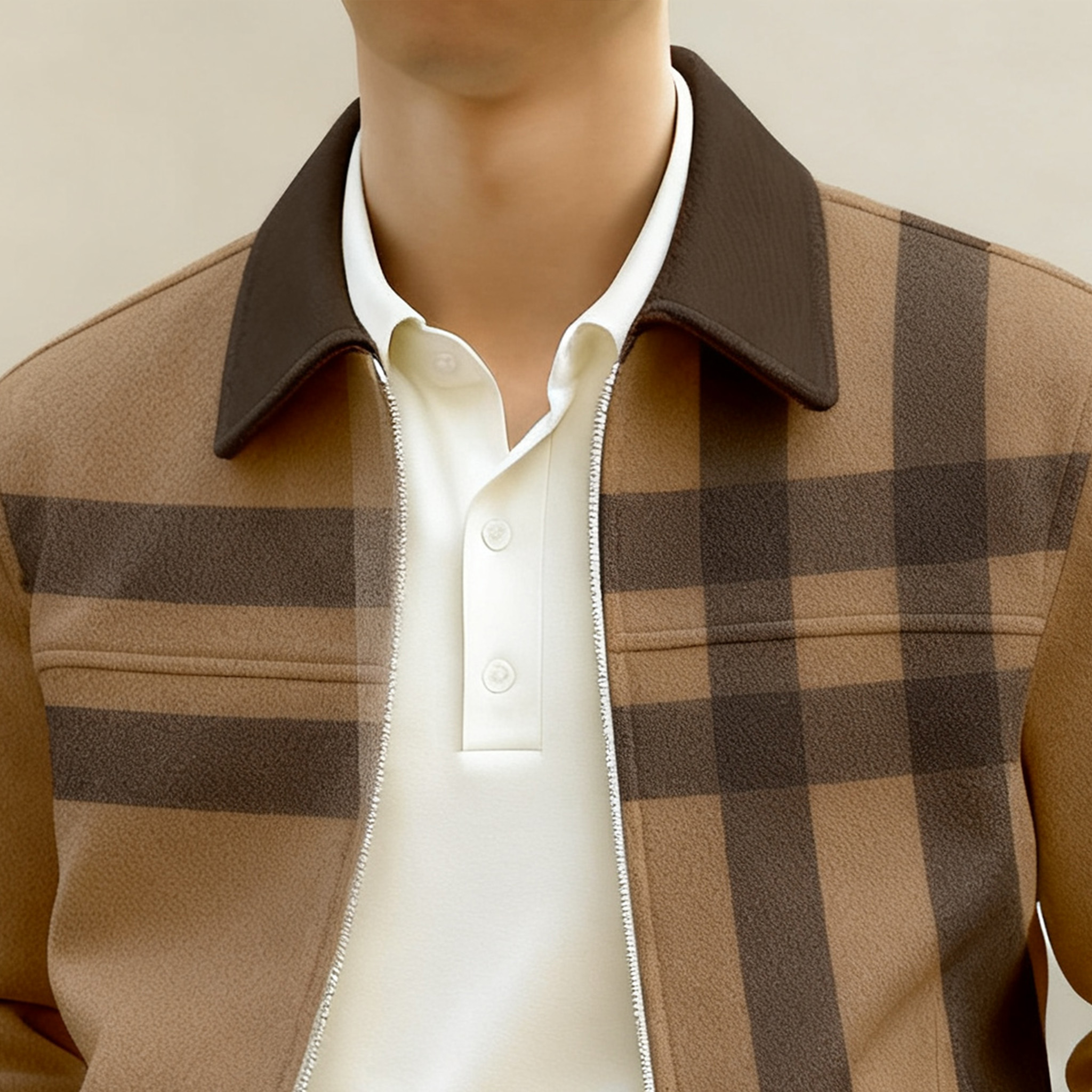 Men's Casual Color Matching Printed Zipper Long Sleeved Zipper