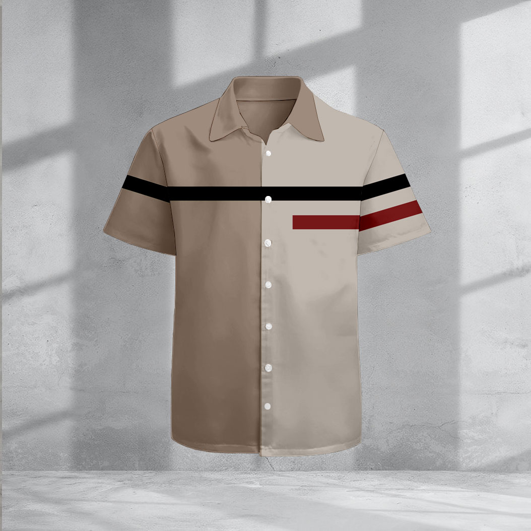 Men's Casual Lapel Khaki & Coffee Color Matching Printed Short Sleeve Shirts