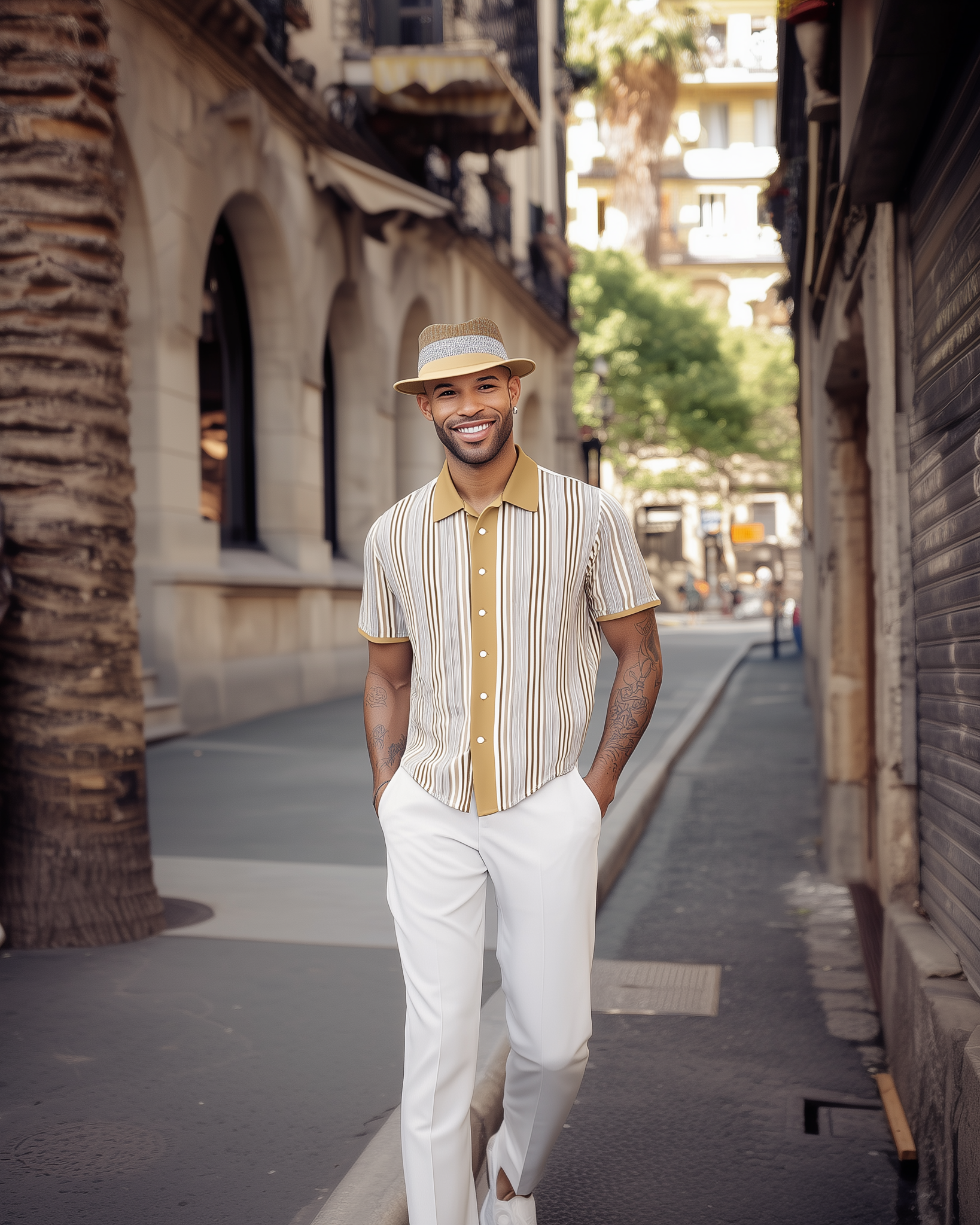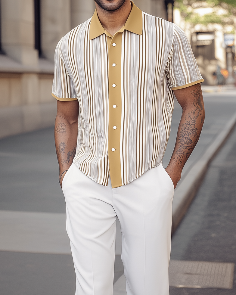 Men's Colorblock Retro Short-Sleeved Walking Suit 0745