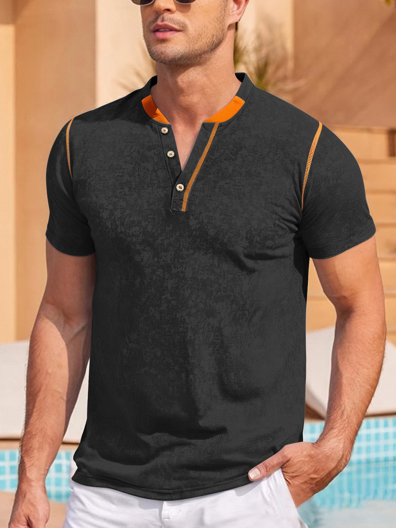 Men's Henley Collar Casual V-Neck Short-Sleeved T-Shirt